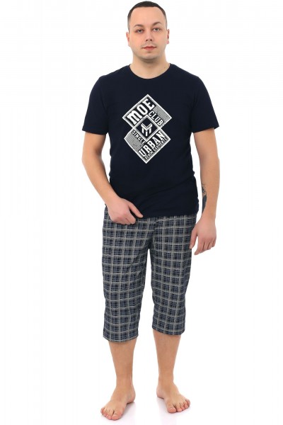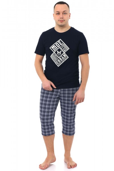 Бриджи мужские трикотажные с карманами на резинке, длинной чуть ниже колена. Комфортная высота посадки - пояс на эластичной ленте. Выполнено из хлопкового трикотажного материала. Дышащий материал изделия идеально подойдет для его использования дома и на отдыхе.