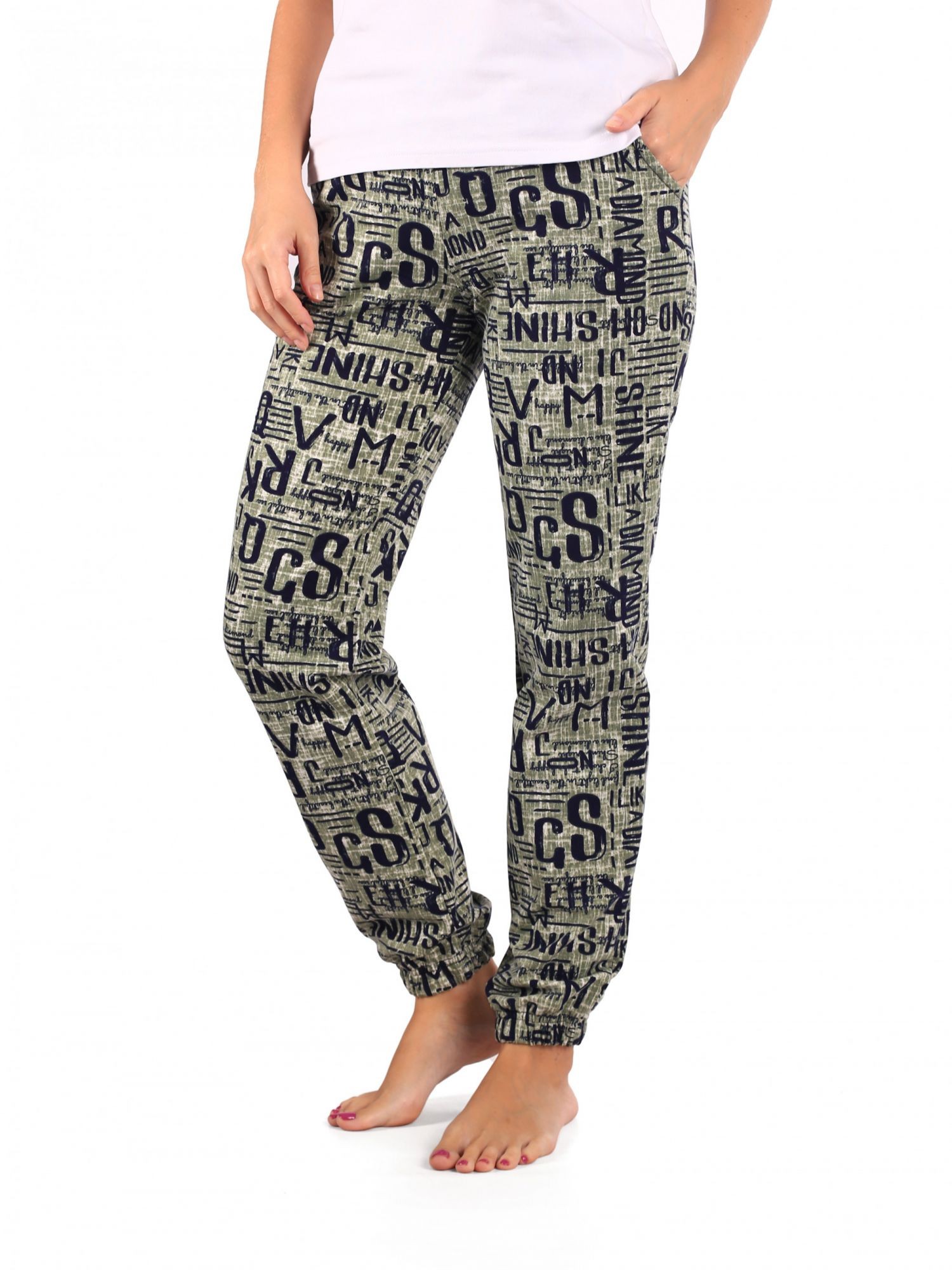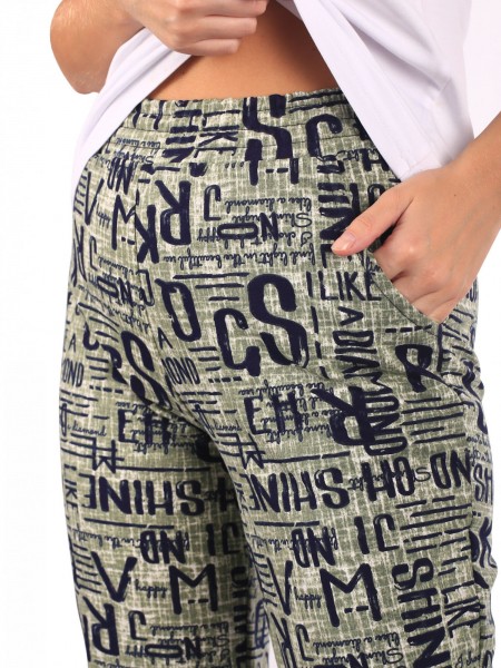 Брюки женские футер с лайкрой Шрифт олива