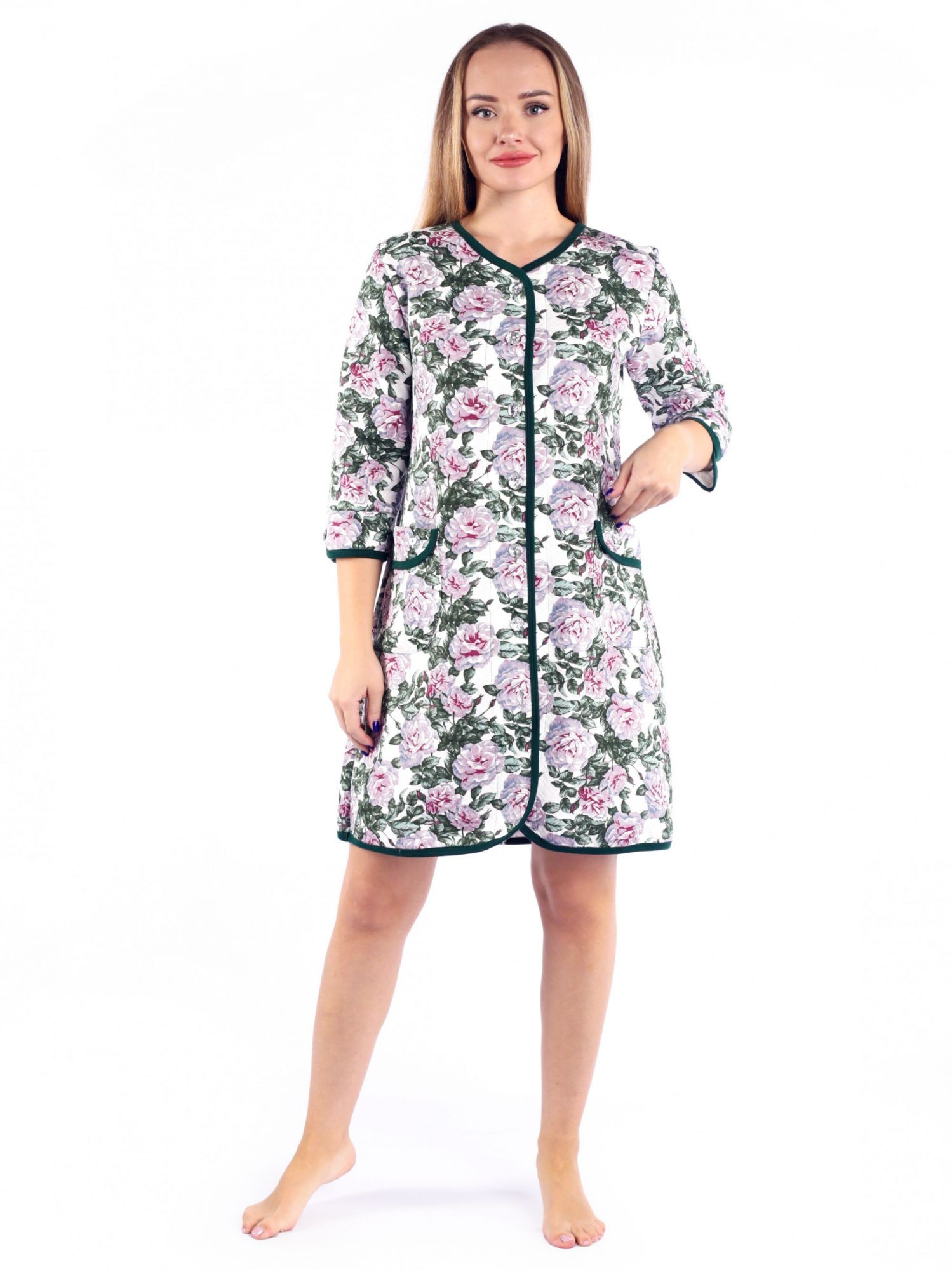Халат женский капитоний на пуговицах Дороти изумруд