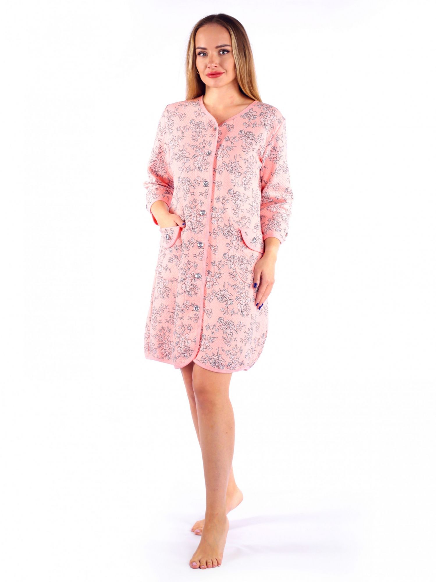 Халат женский капитоний на пуговицах Дороти розы