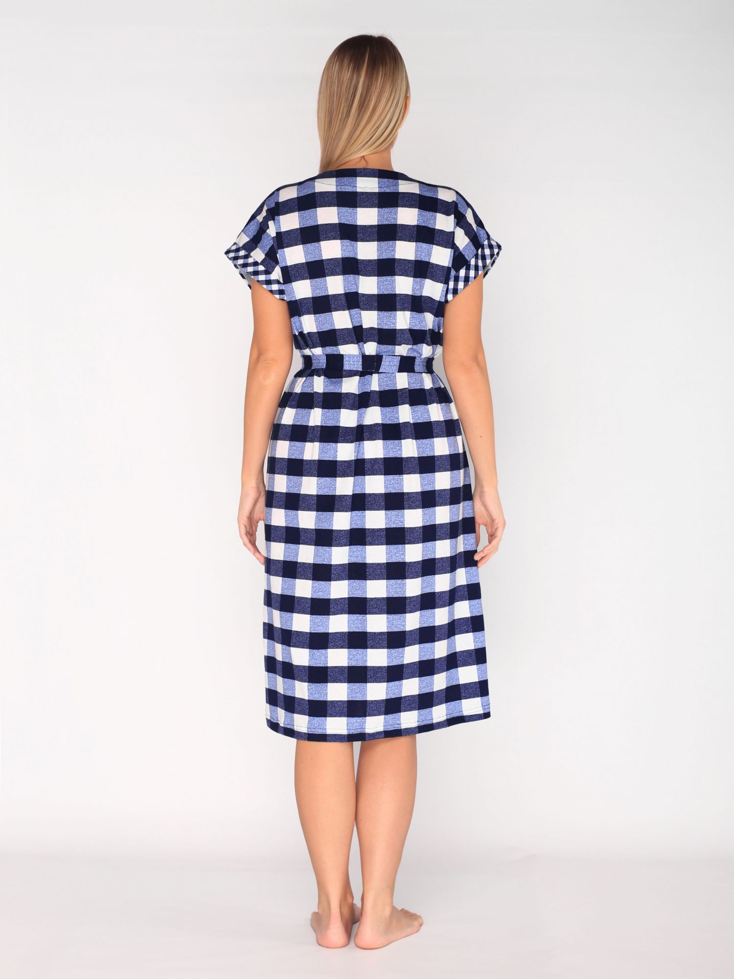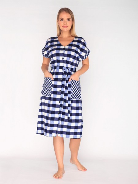 Халат женский кулирка Бьянка крупная клетка синий