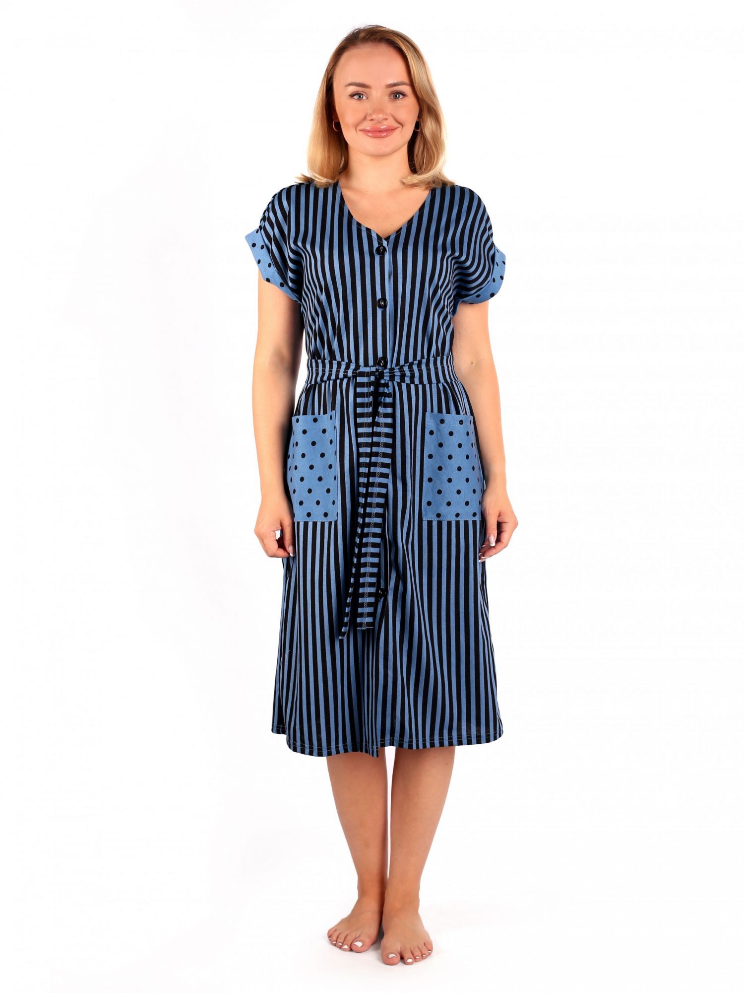 Легкий и удобный домашний халат из кулирки на пуговицах. Модель свободного женственного силуэта с короткими рукавами и глубокими накладными карманами. Такой халат обязательно порадует качественным и приятным к телу материалом, комфортным фасоном и сочными расцветками.