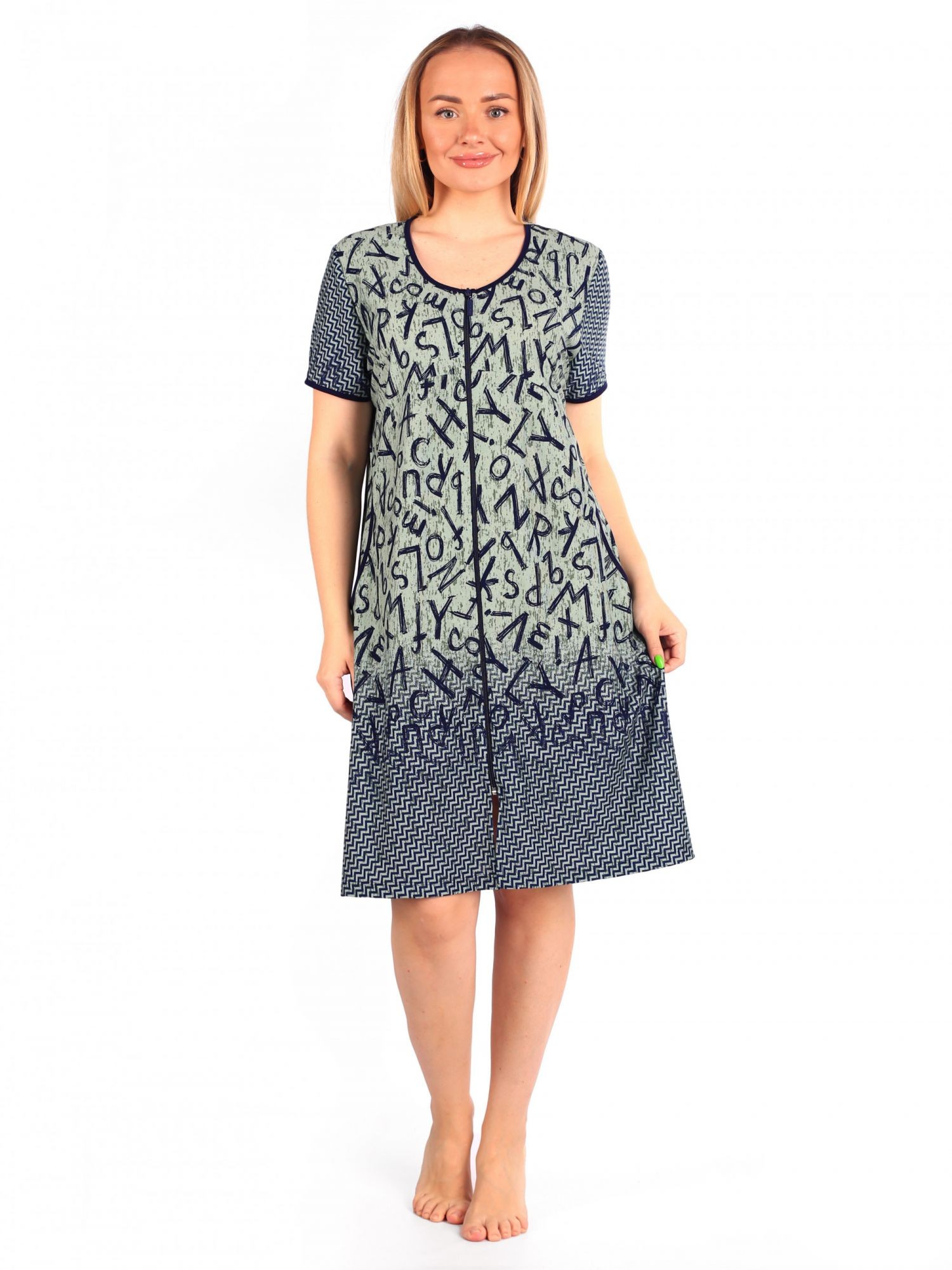 Халат женский кулирка на молнии Алфавит хаки