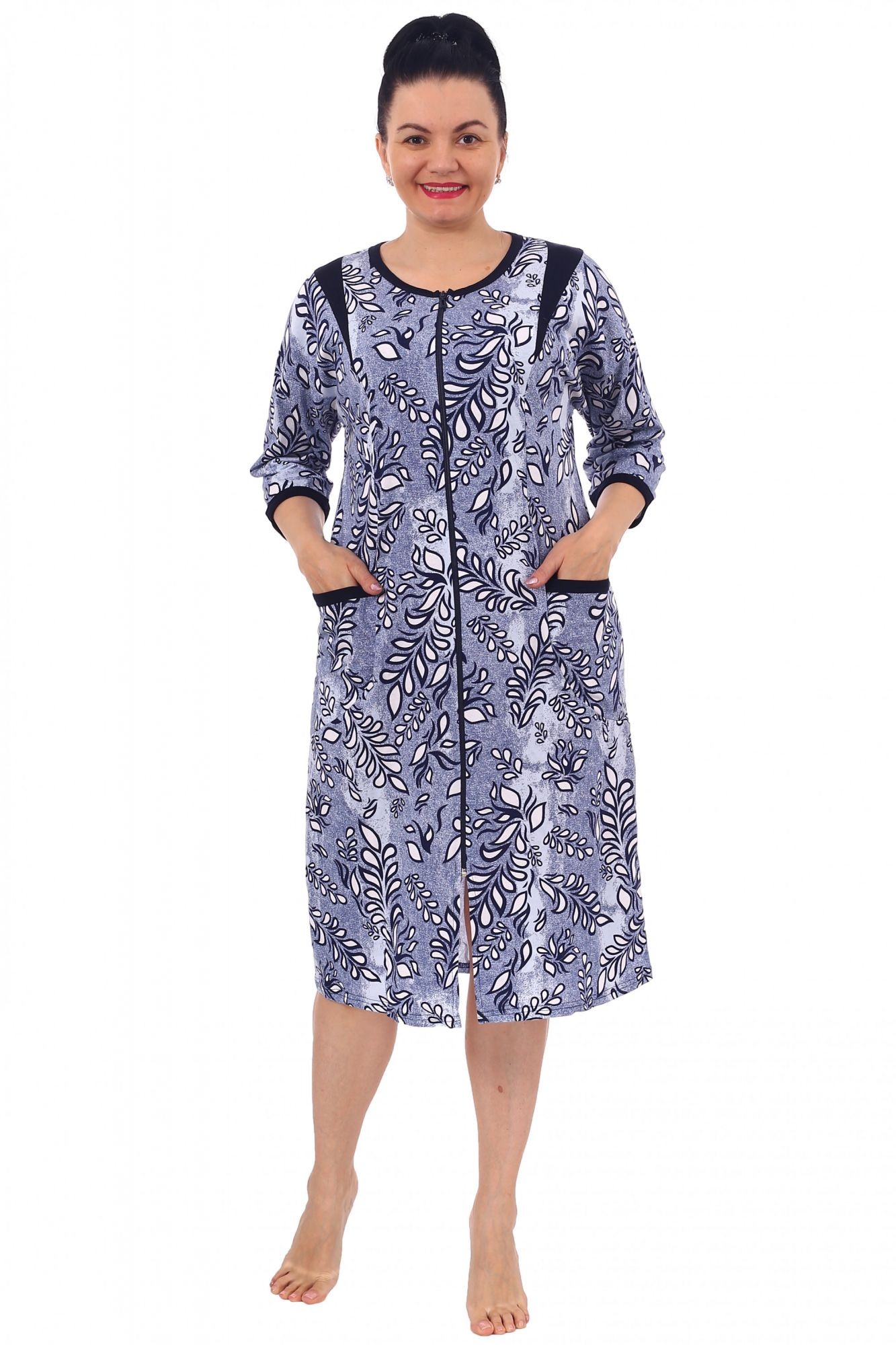 Халат женский кулирка на молнии Алтея голубой