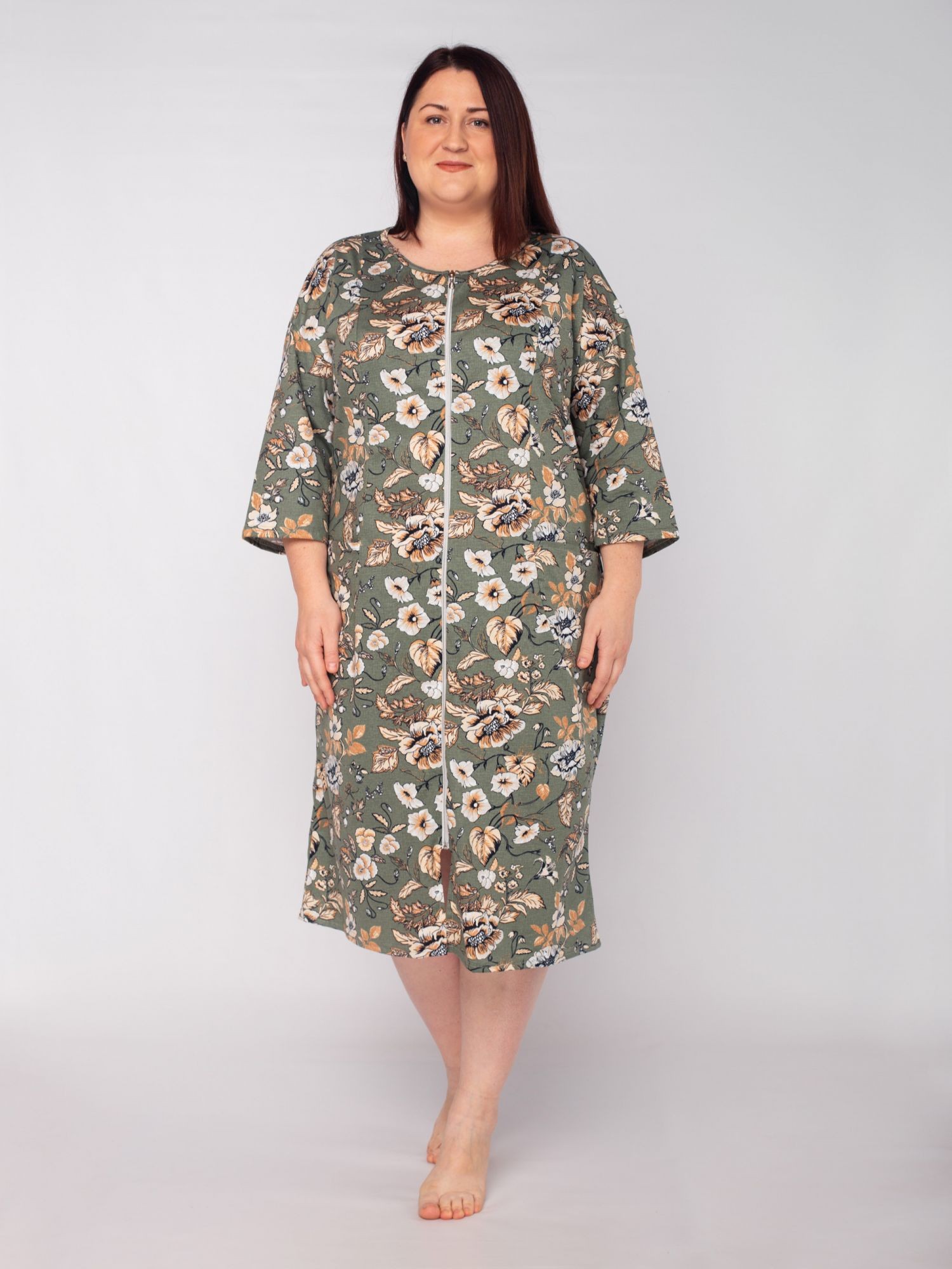 Халат женский кулирка на молнии Алтея зелень