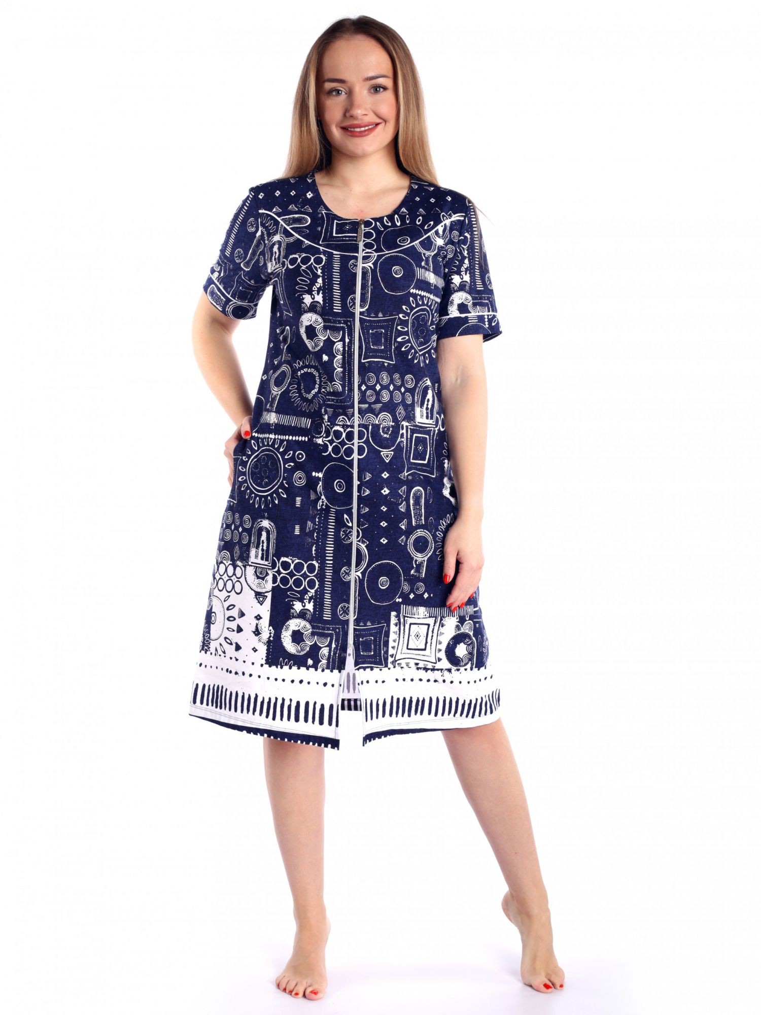 Халат женский кулирка на молнии Даяна синий МАЛОМЕРКИ!