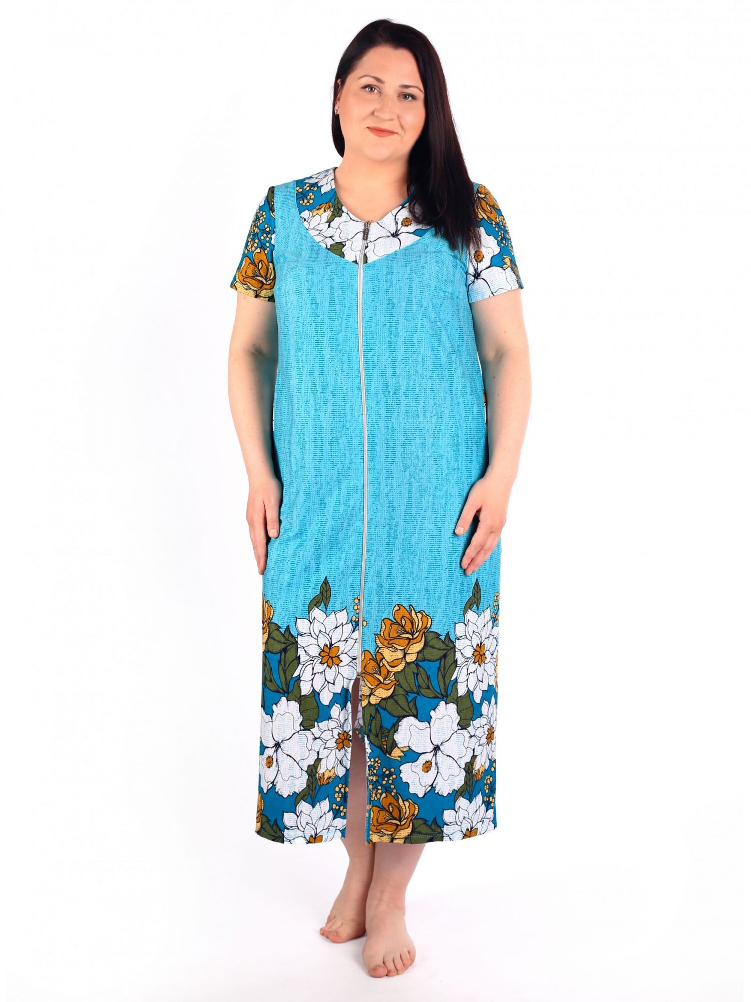 Халат женский кулирка на молнии Маркиза бирюза