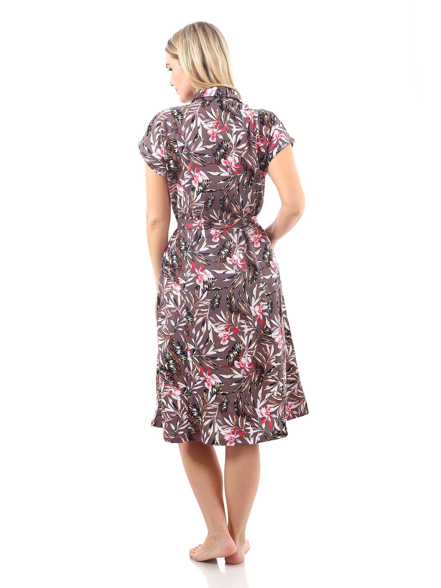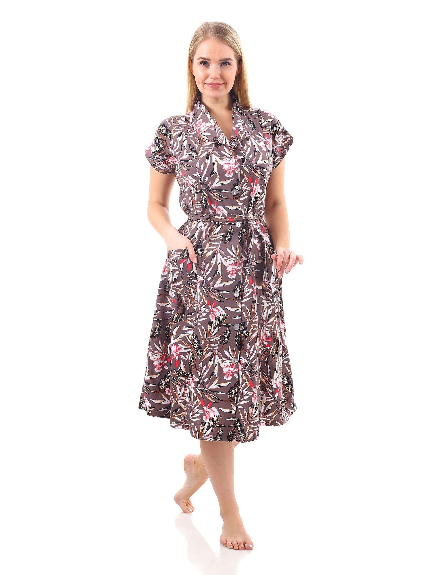 Халат женский кулирка на пуговицах Абстракция бежевый лист