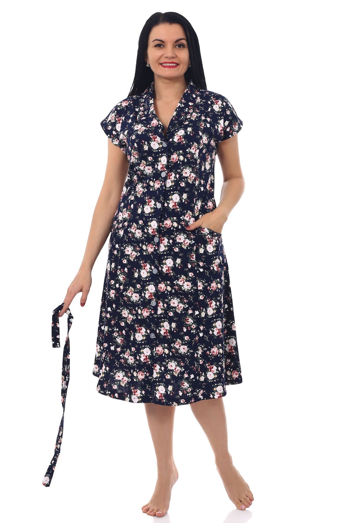 Халат женский кулирка на пуговицах Абстракция бутончики