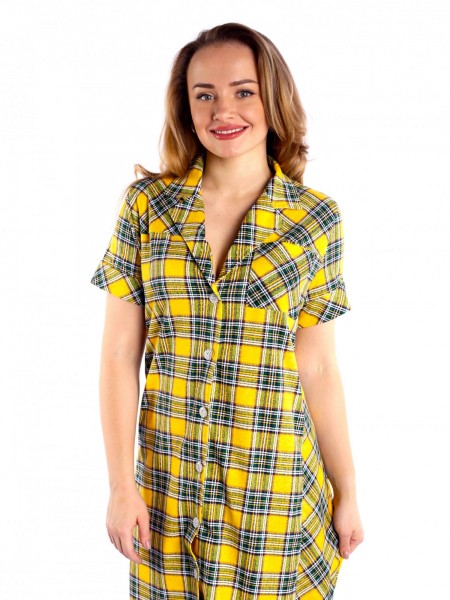 Халат женский кулирка на пуговицах Герда желтая клетка