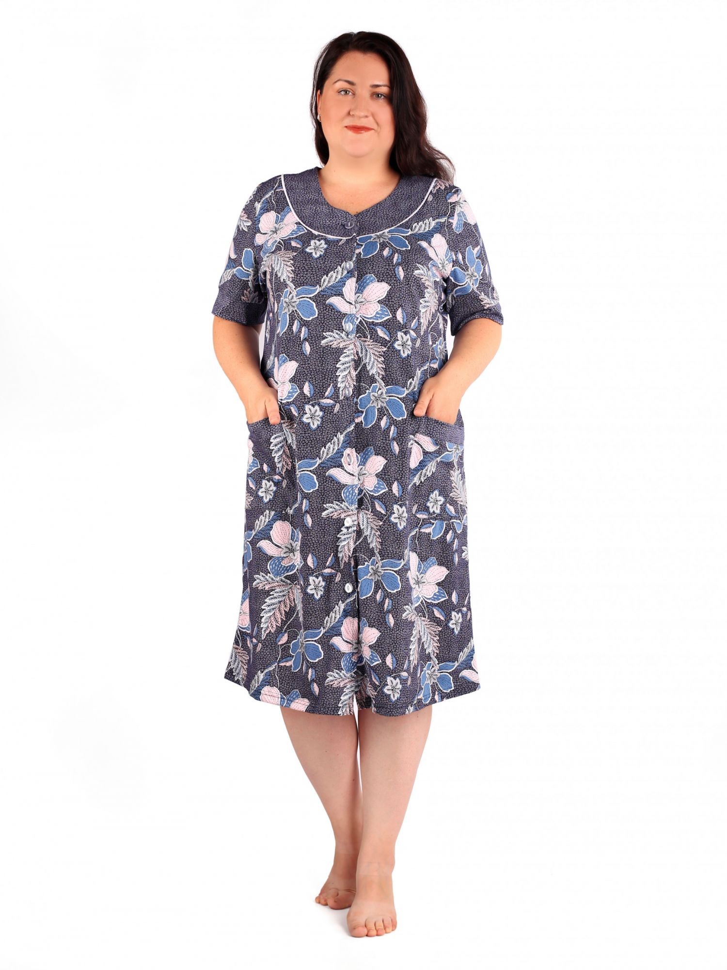 Домашний халат классического кроя из хлопка на пуговицах прекрасно подойдет для дома и дачного отдыха. Приятный принт ткани данной модели будет отлично сочетаться с интерьером любого дома/квартиры и подарят Вам незабываемый уют. Данный домашний халат абсолютно не сковывает движения, легок в уходе и не теряет цвет после стирок.
