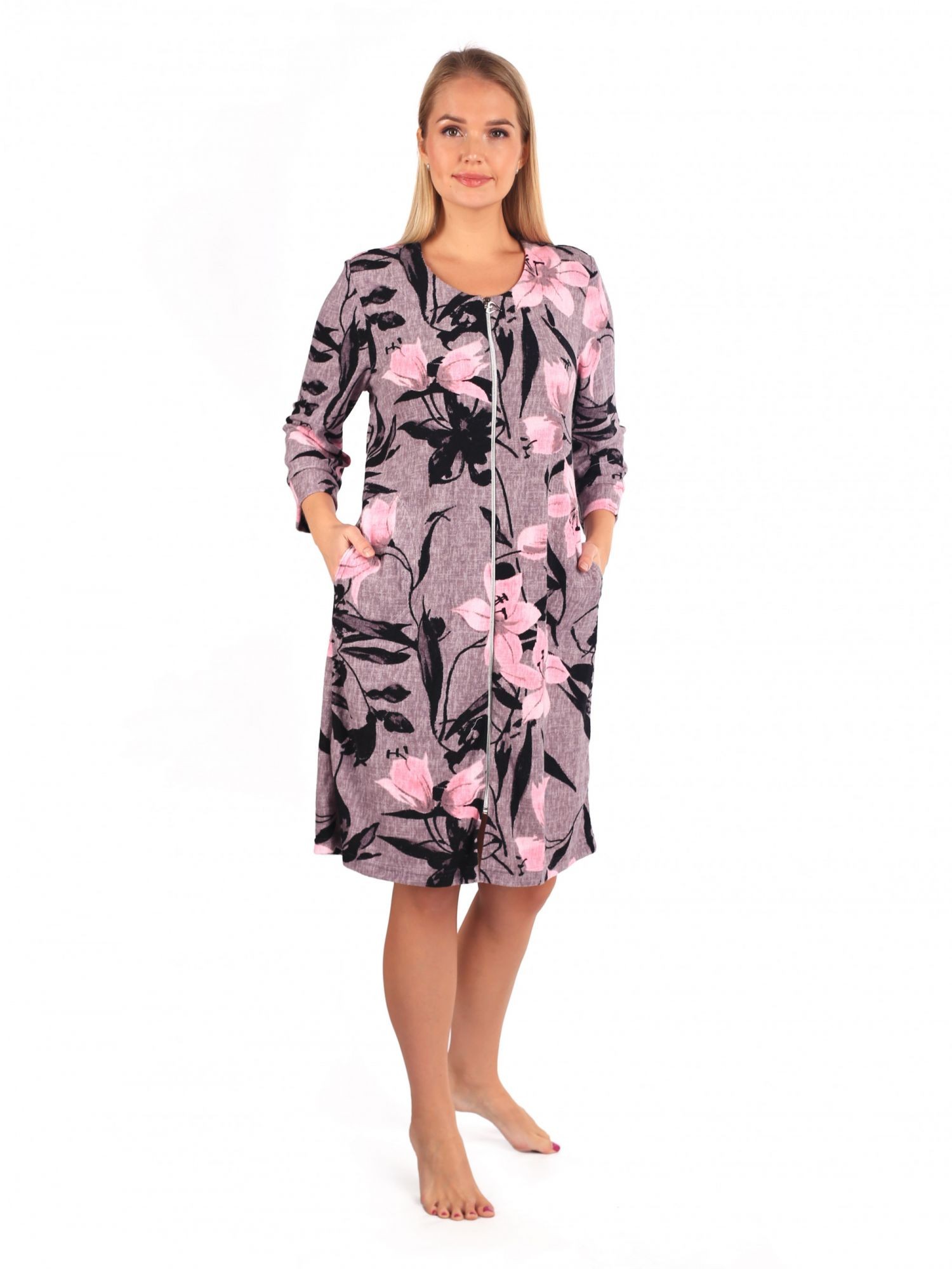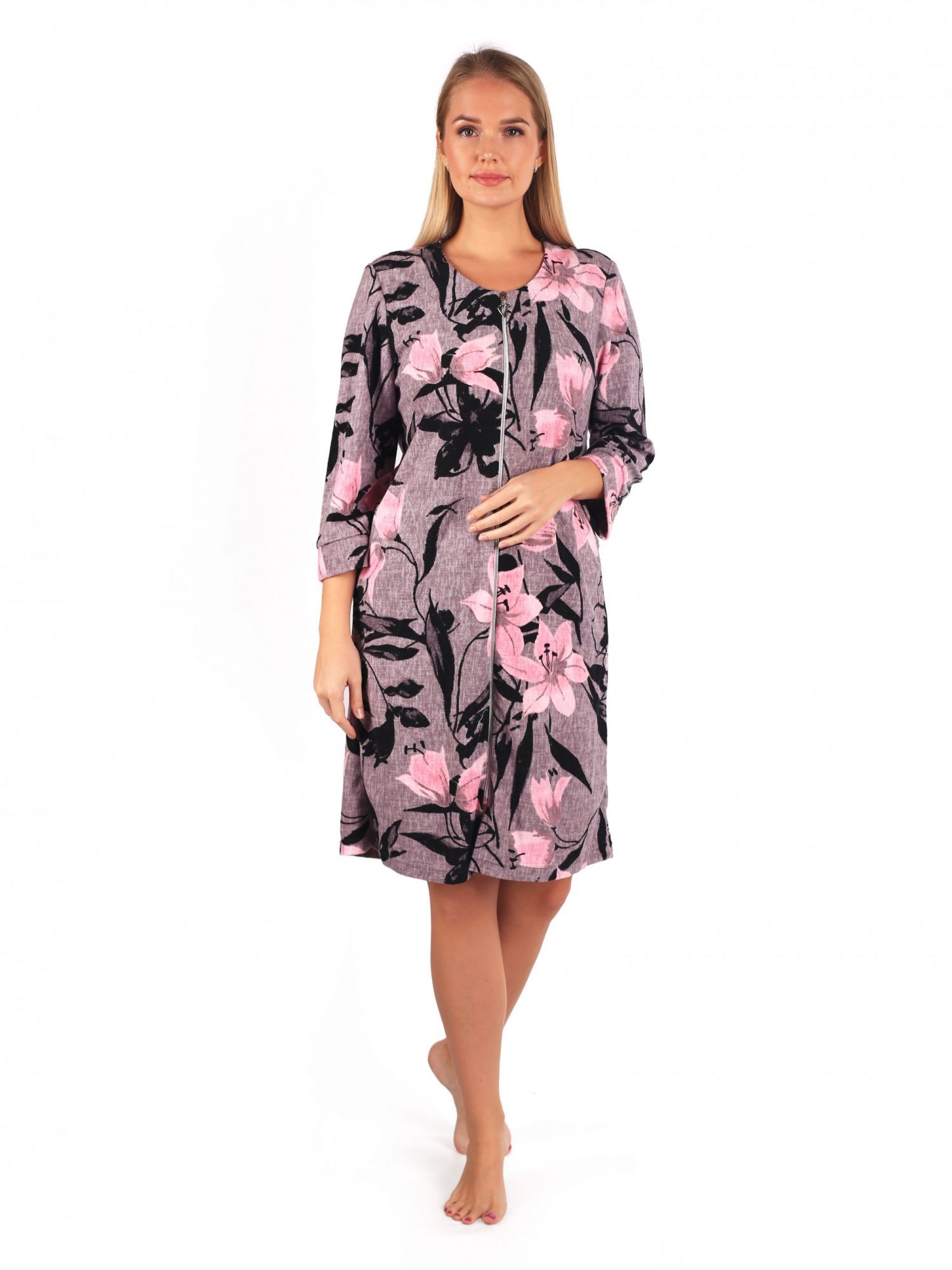 Халат женский махровый на молнии Рошель лилии
