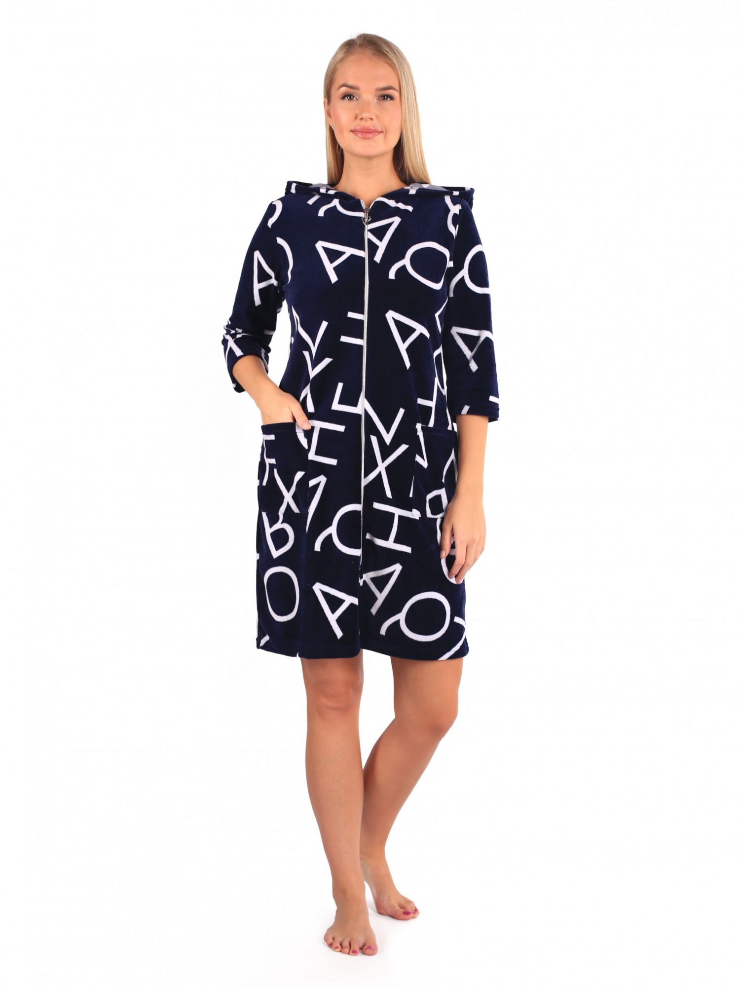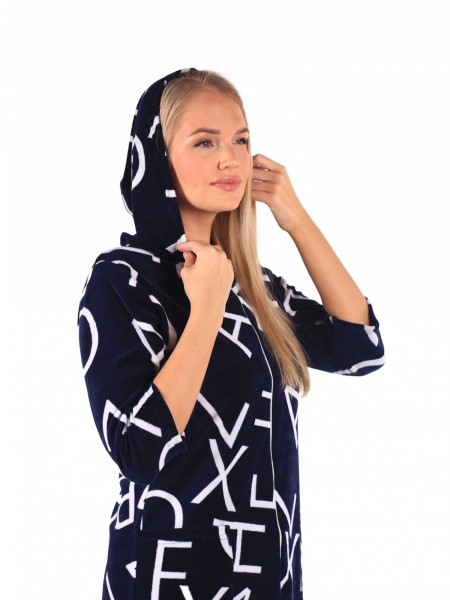 Халат женский велюровый на молнии Таша синий