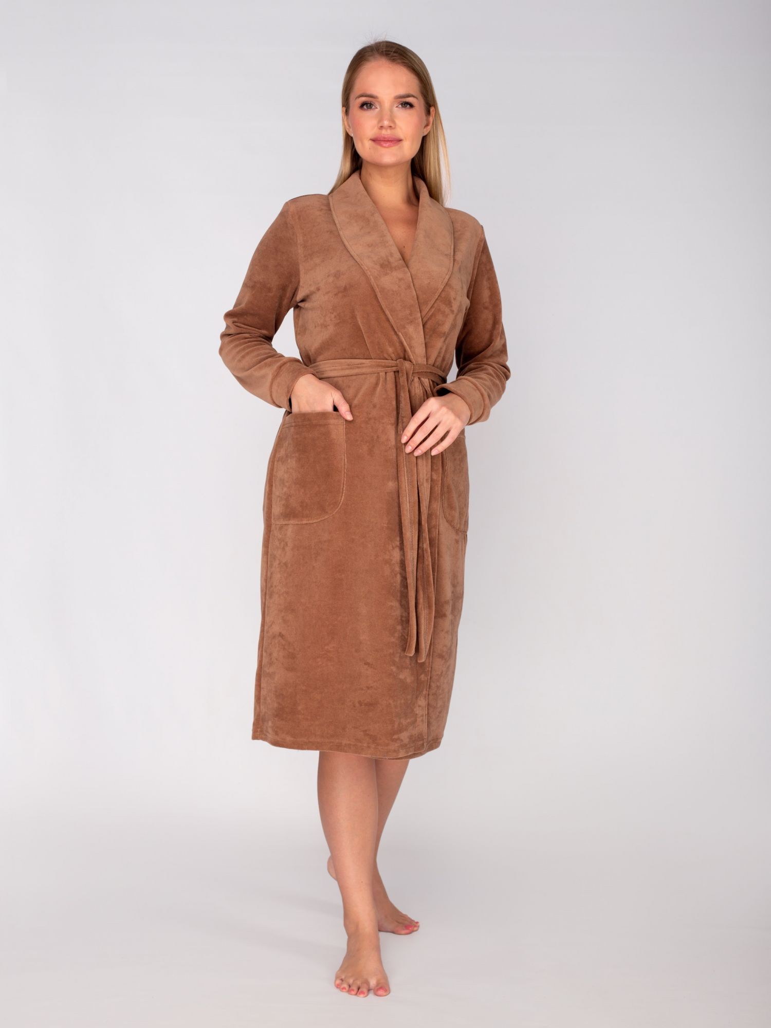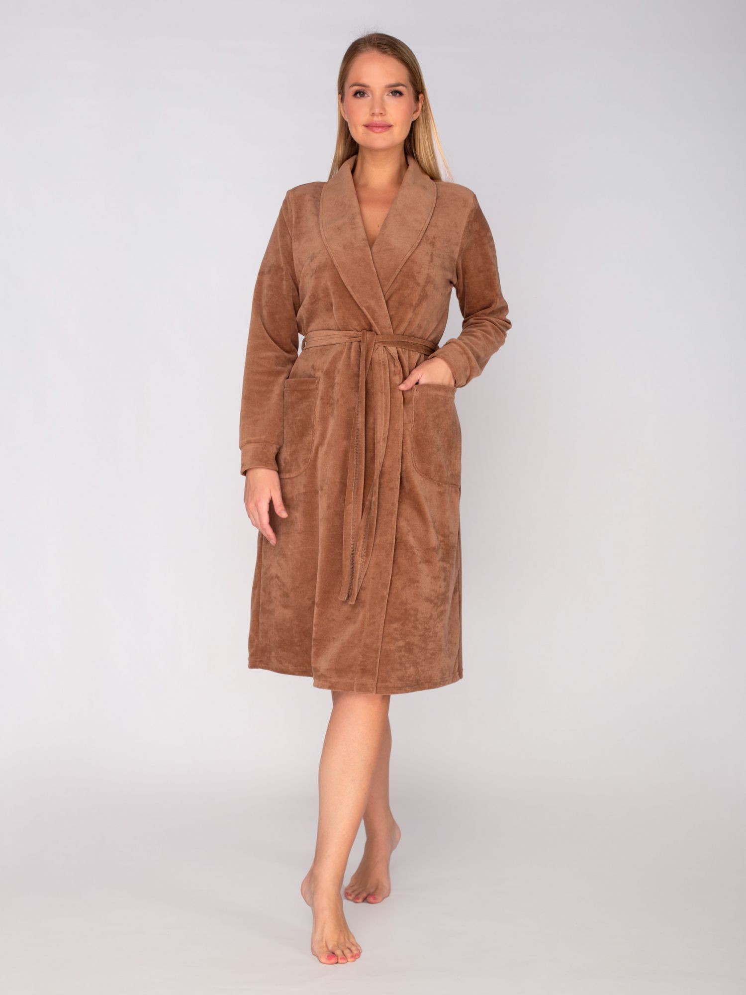 Халат женский велюровый на запах Новелла кофе