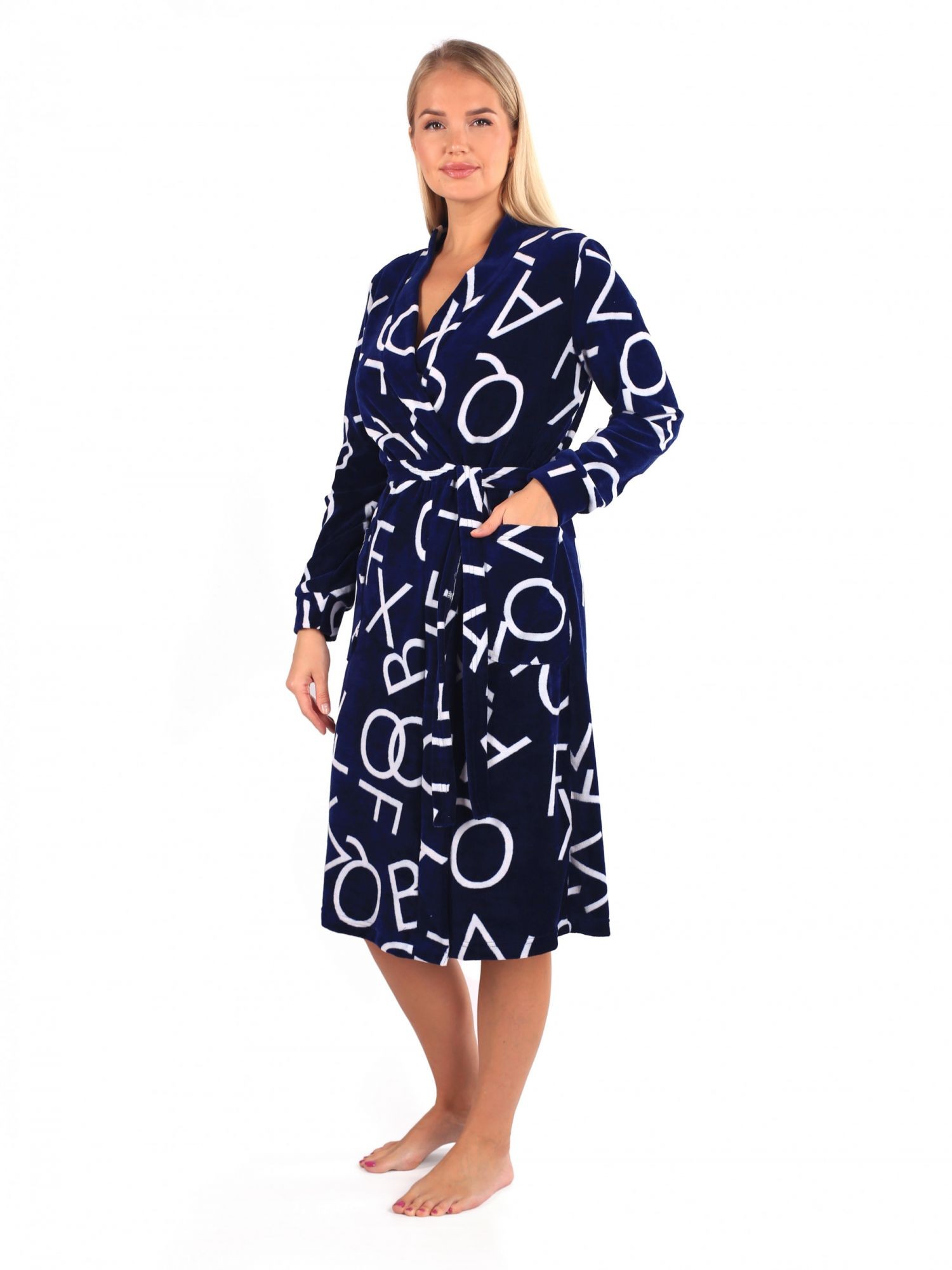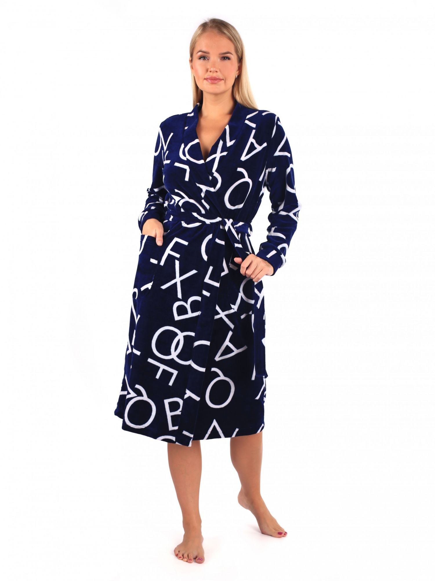 Халат женский велюровый на запах Октава синий