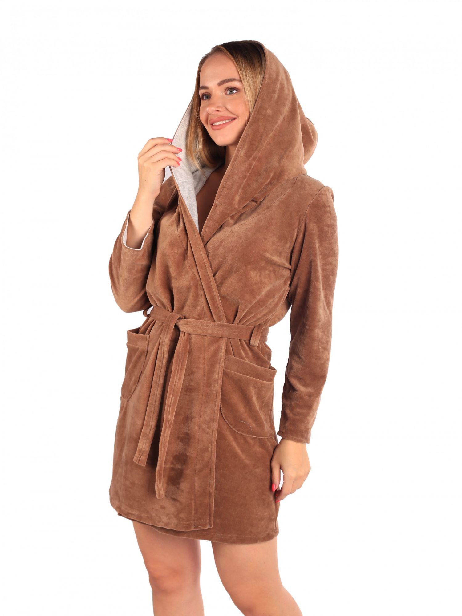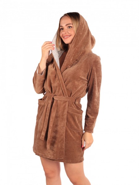 Халат женский велюровый на запах Пенелопа кофе