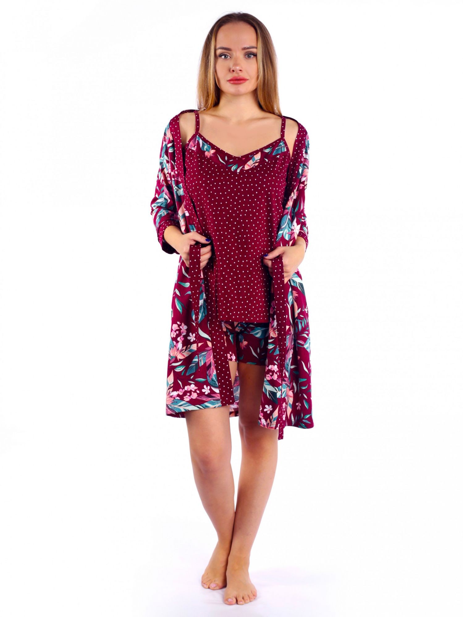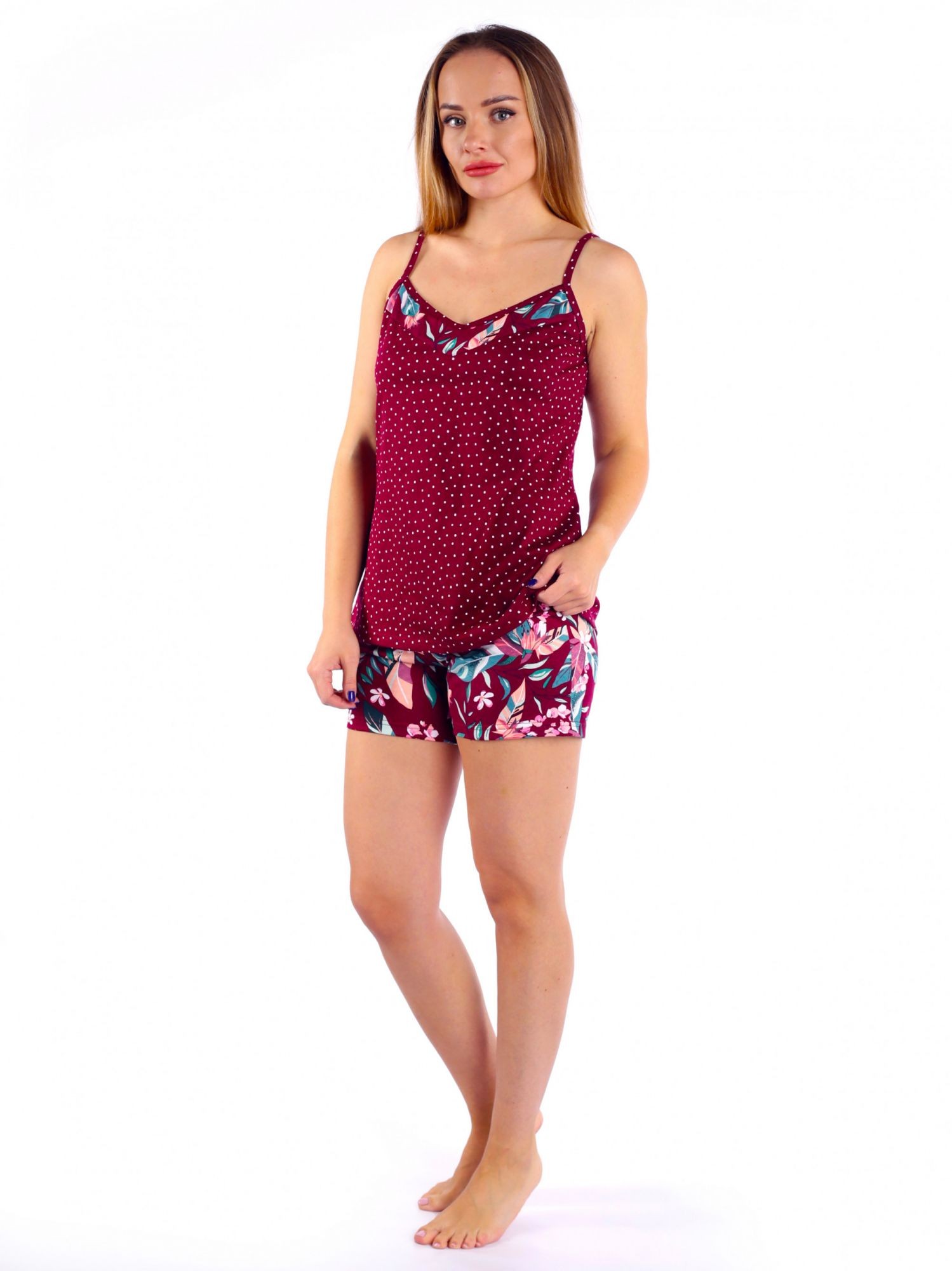 Комплект женский кулирка с шортами Виола бордо