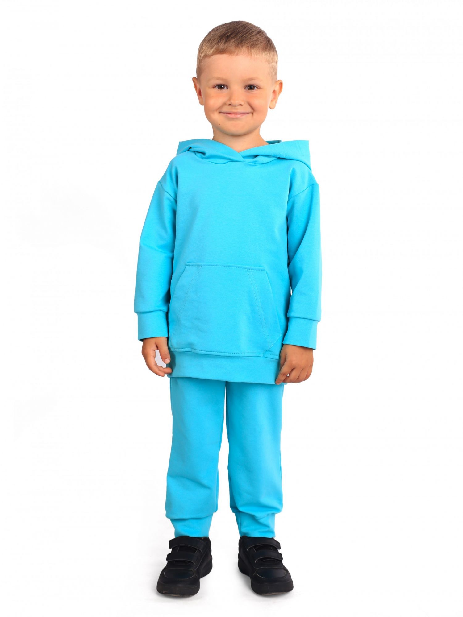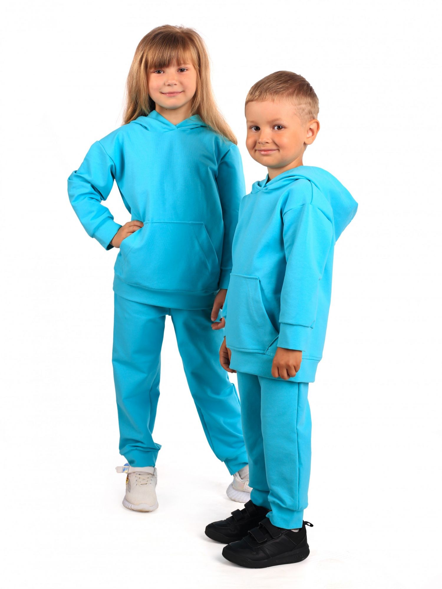 Трикотажный костюм из высококачественного 2-х ниточного футера - обязательный предмет гардероба современного подростка. Модель унисекс подойдет как для девчонок, так и для мальчиков!Худи глубоким, полноценным капюшоном с карманом-кенгуру, брюки-джоггеры на манжетах из кашкорсе в цвет изделия,с боковыми карманами. Костюм изготовлены из плотного трикотажа. Подойдет для активных игр и занятий спортом.Модная модель не будет стеснять движение Вашего ребенка, а ребенок не захочет снимать его.