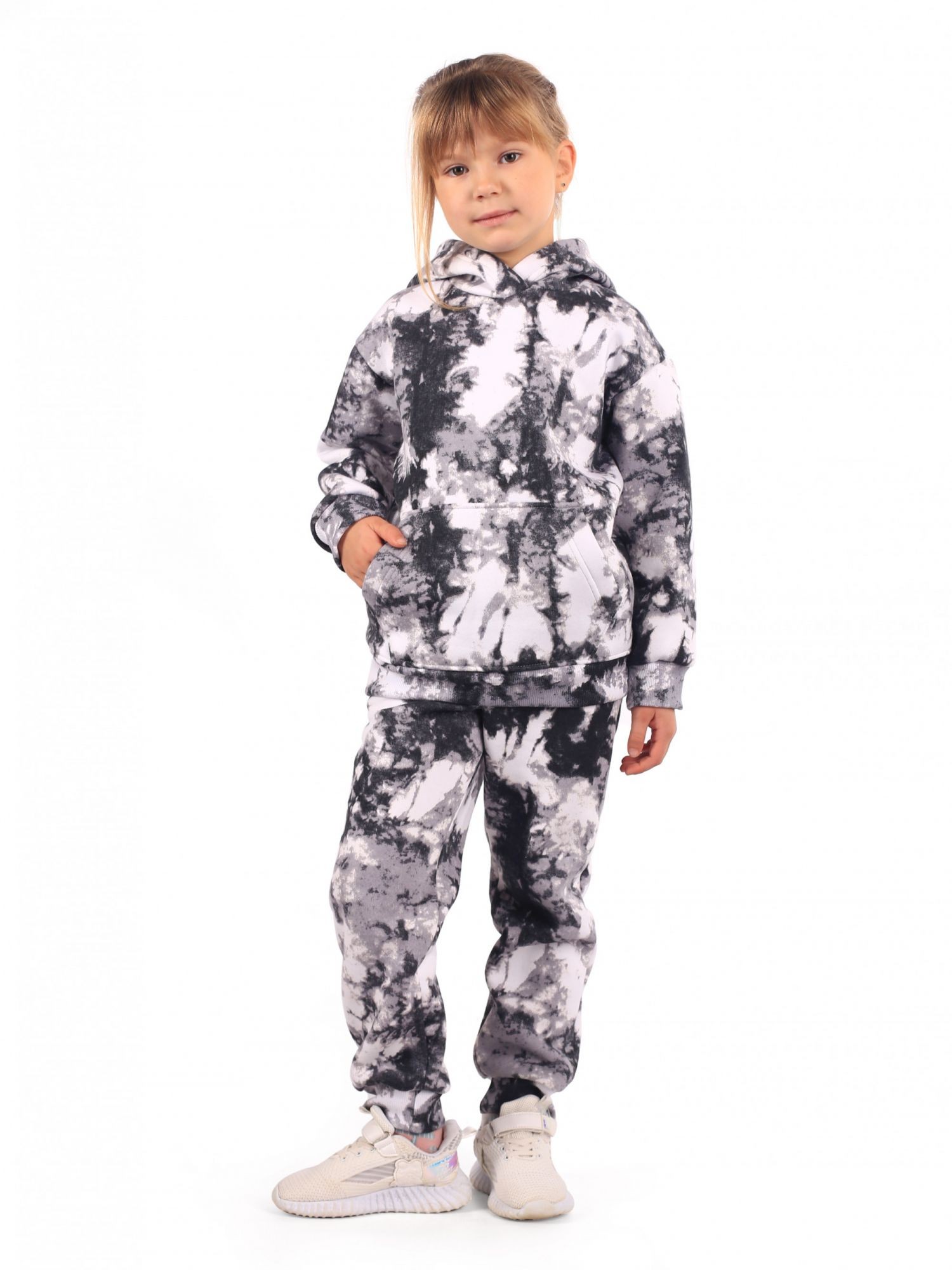 Костюм с капюшоном из плотного и мягкого футера с начесом для маленьких модников и модниц! Детский тёплый костюм на флисе, с модным принтом. Детский спортивный костюм состоит из толстовки и брюк. Толстовка свободного кроя, удлинённая, с капюшоном, линия плеч занижена, удобный карман кенгуру Брюки комфортной посадки с эластичным поясом и двумя боковыми карманами. Манжеты кофты и брюк отделаны кашкорсе с принтом в цвет изделия. Базовый детский костюм подойдёт и для мальчика и для девочки. Удобный и практичный детский спортивный костюм подходит для повседневной носки, в поездку или путешествие.