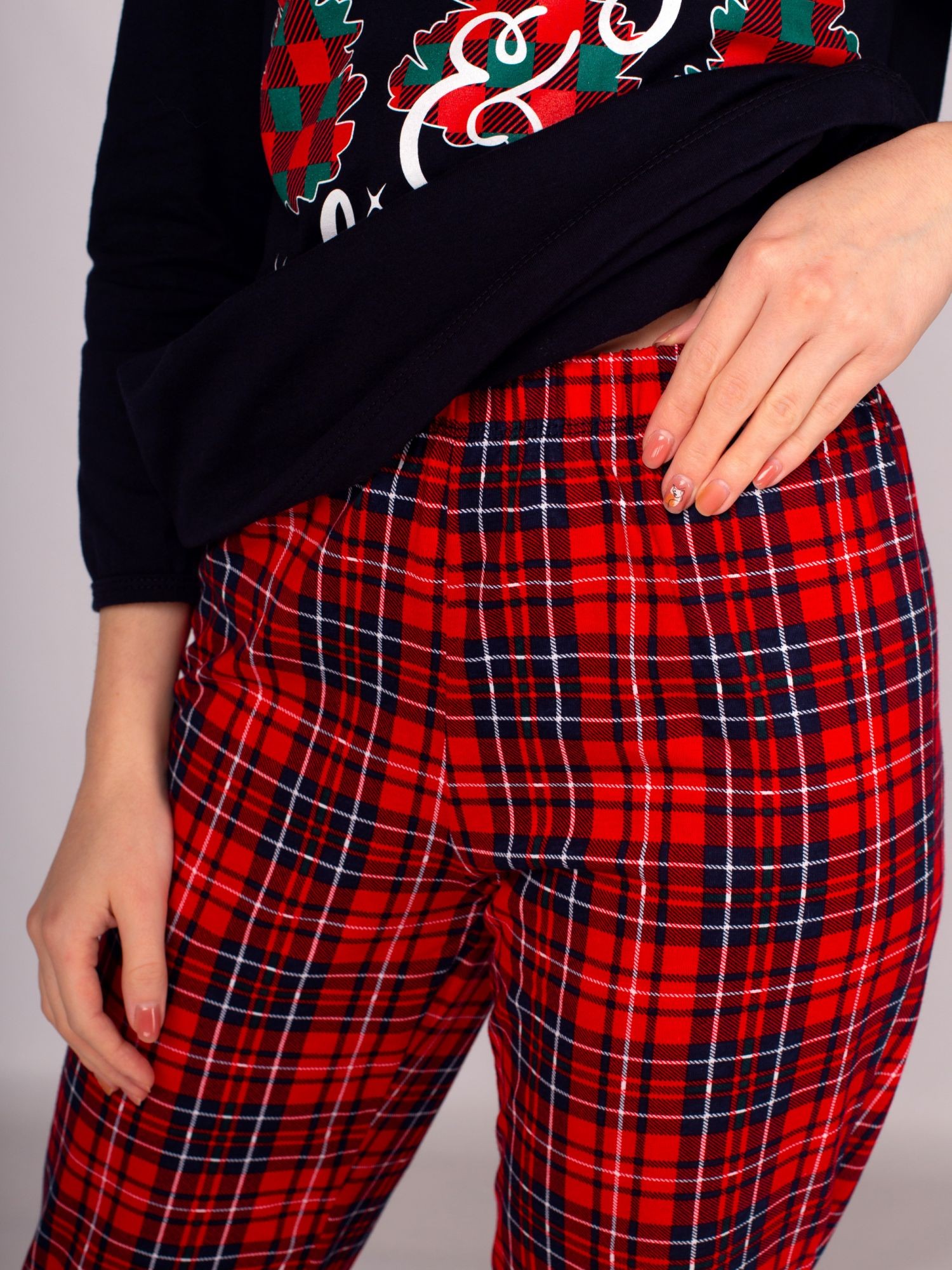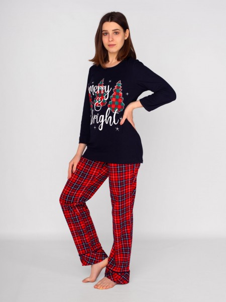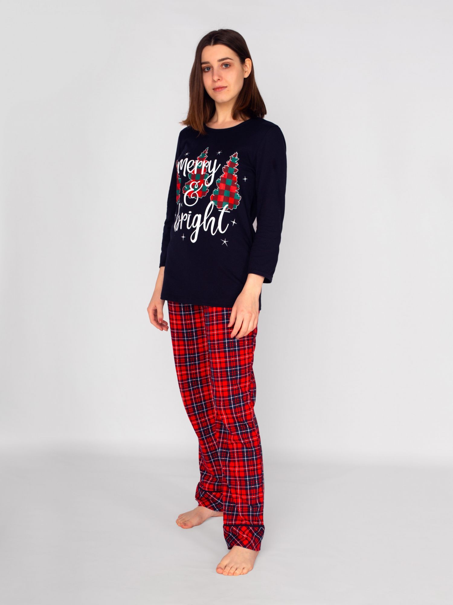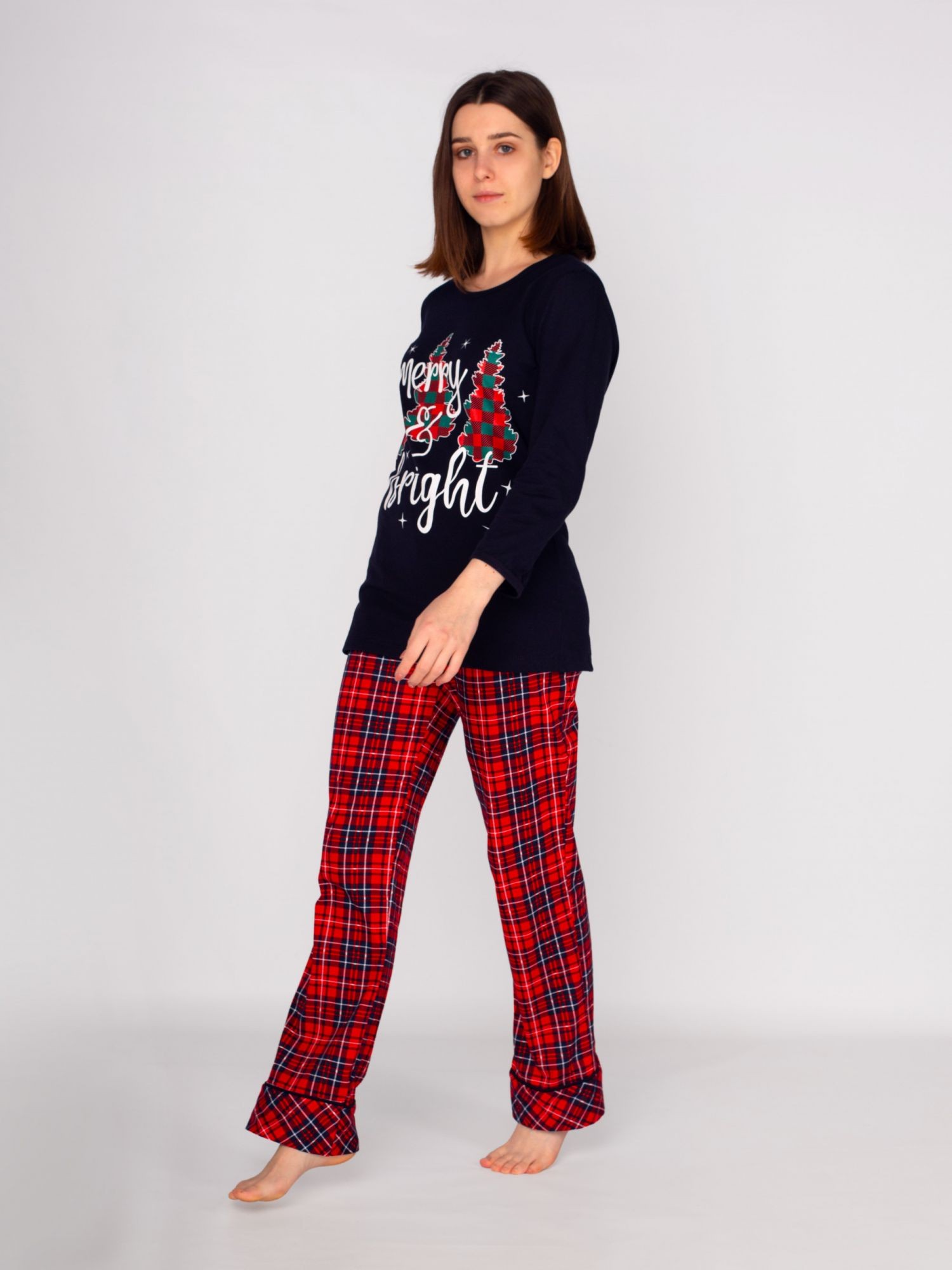 Женская пижама с новогодней тематикой.Пижама из 100% хлопка, позволит коже дышать и не будет стеснять ваши движения. Благодаря эластичной хлопковой ткани новогодняя пижама подойдет под все типы фигур и телосложений. Мягкая резинка на брюках не будет сдавливать живот - идеальная пижама для беременных. Пижама не только одежда для сна, но и красивая, удобная одежда для дома. Пижамный комплект подойдет для девочек подростков и взрослых девушек, женщин. Поэтому вы сможете заказать его не только себе, но и в подарок своему ребенку. Или, может, вы захотите купить две одинаковые пижамы и устроить новогоднюю фотосессию в стиле Family Look?
