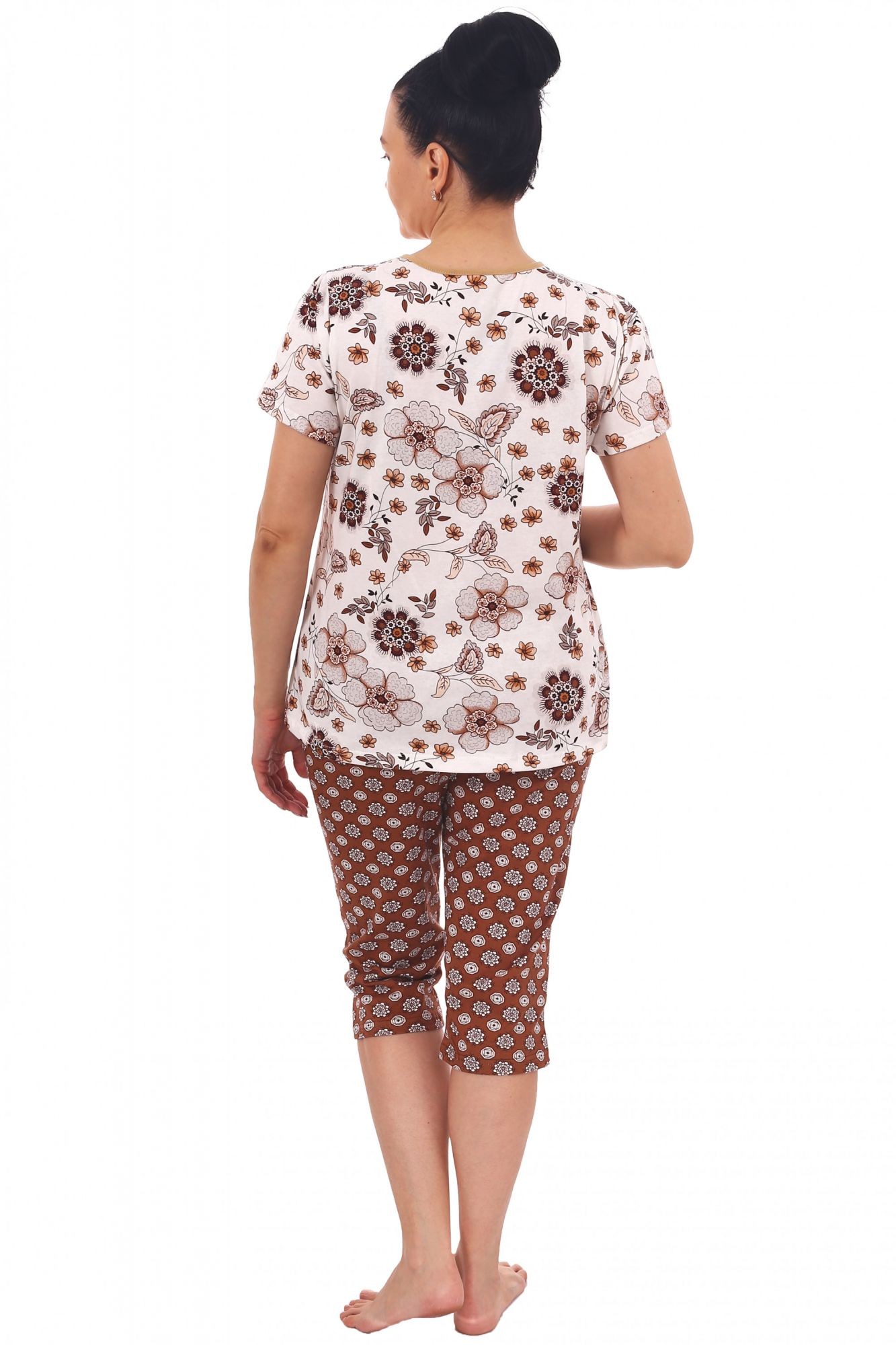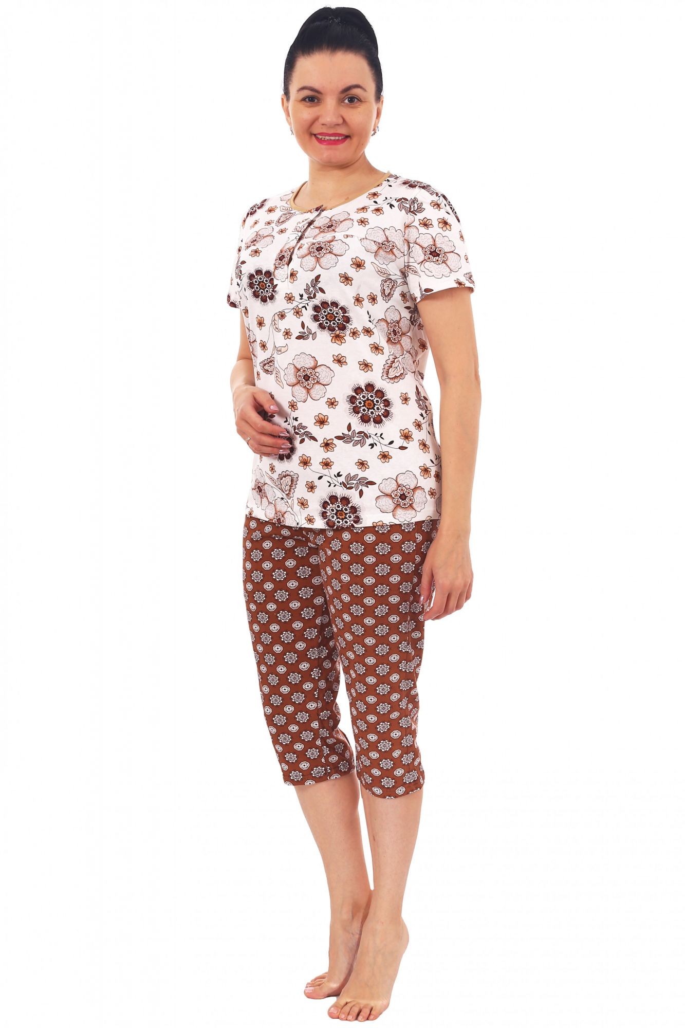 Костюм женский кулирка с бриджами Фаина коричневый