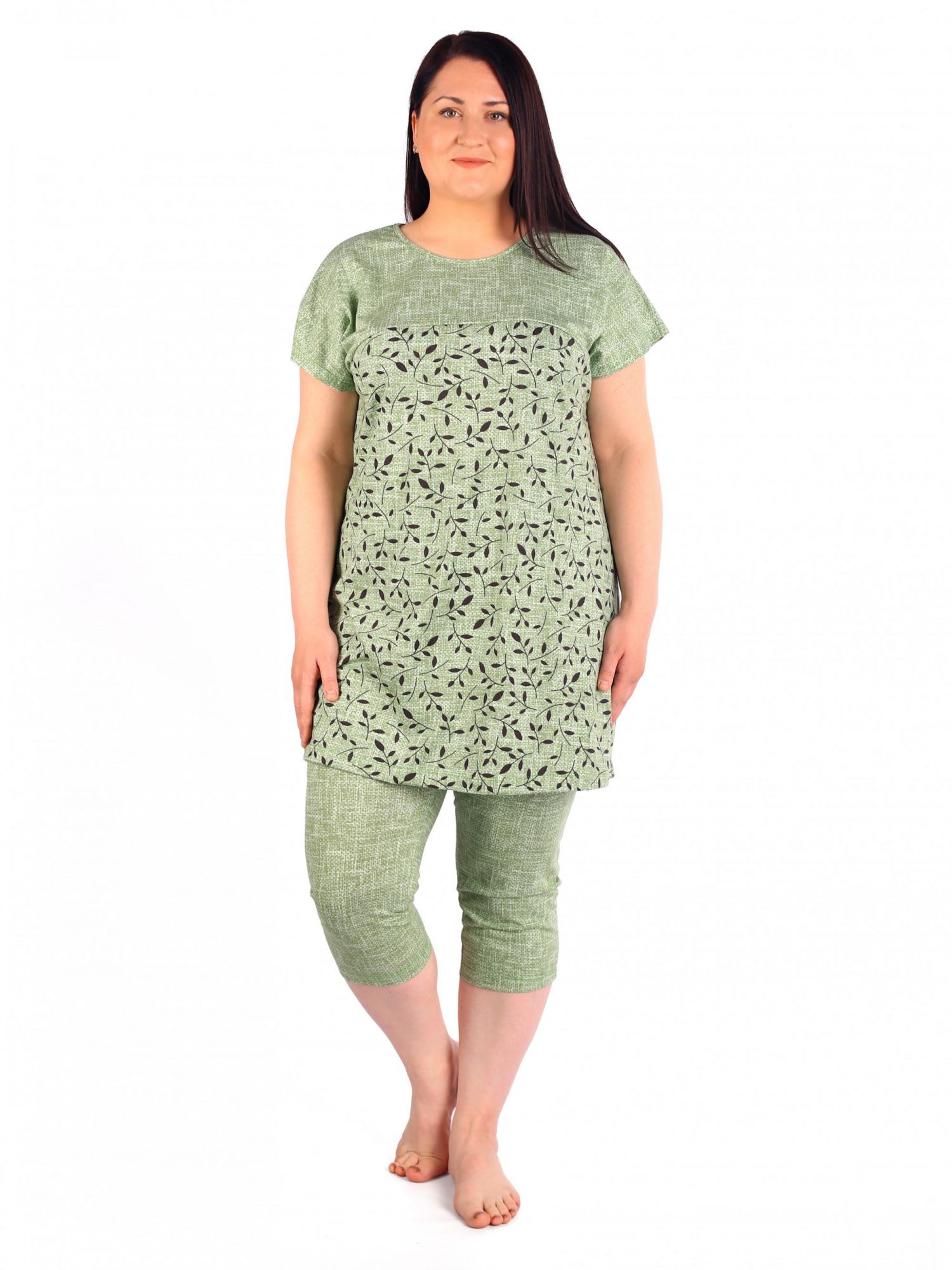 Костюм женский кулирка с бриджами Лепесток зелень 1