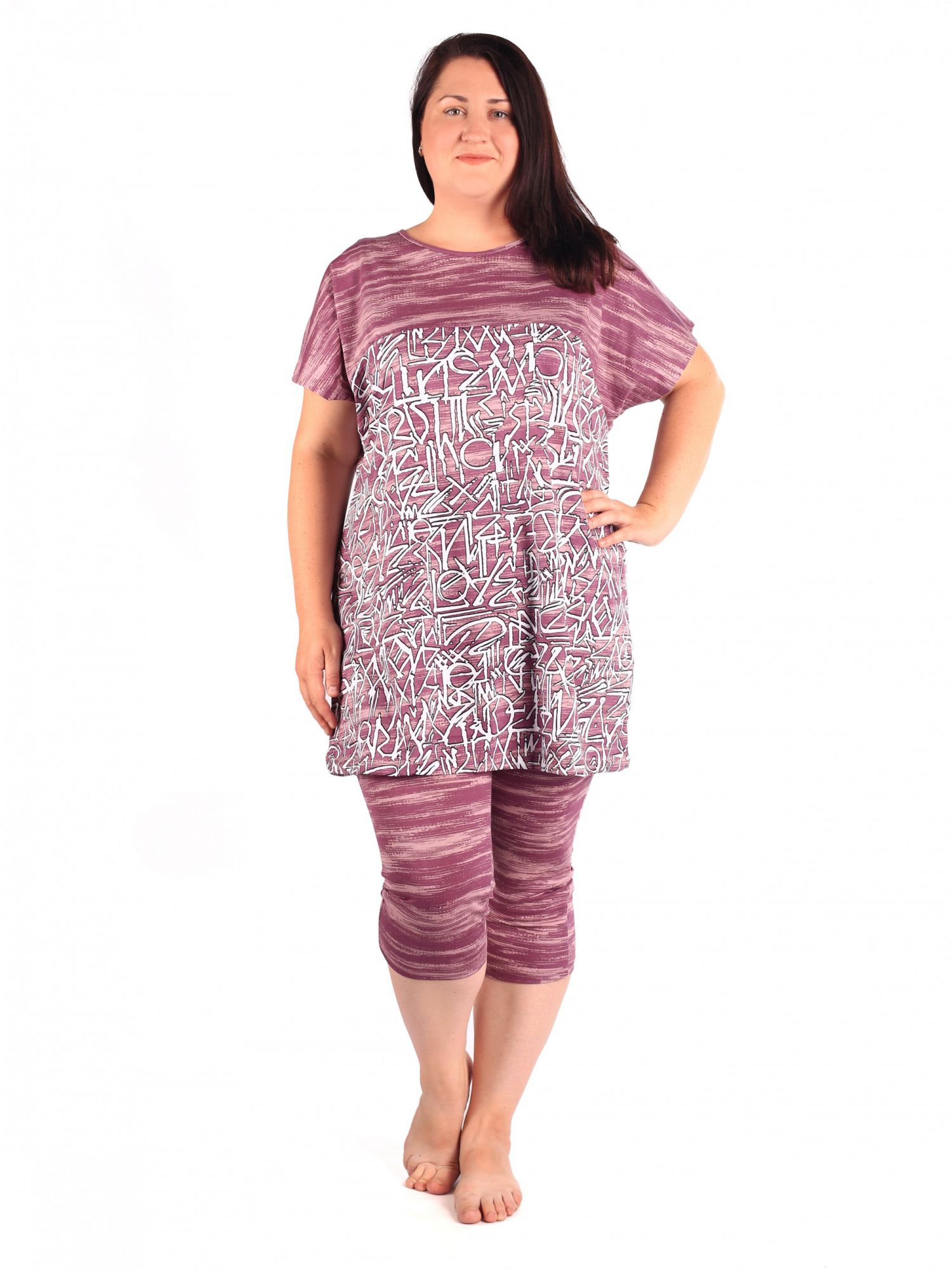 Костюм женский кулирка с бриджами Матильда брусника