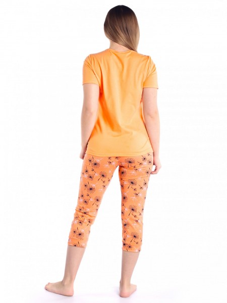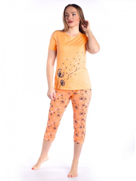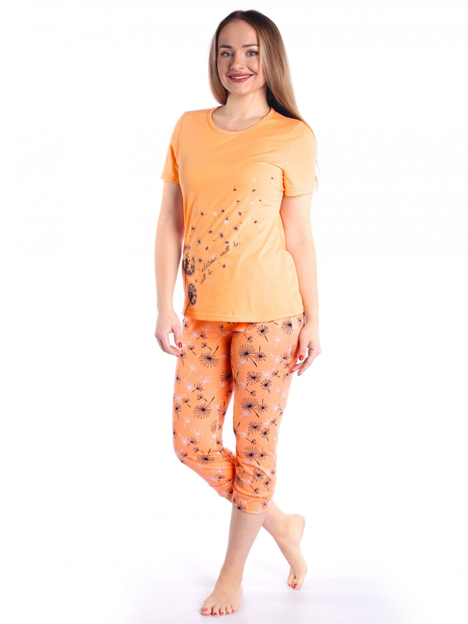 Домашний комплект женский с бриджами и футболкой свободного кроя с принтом в виде одуванчика. Рисунок выполнен с использованием современных технологий. Однотонные бриджи с классической посадкой, ниже колен. Костюм выполнен из натурального 100% хлопка, что делает его воздухопроницаемым, гигроскопичным и гипоаллергенным. Ткань кулирка слабо поддается растяжению и усадке. Приятное к телу полотно не скатывается, сохраняет форму и цвет после множества стирок. Этот комплект прекрасный выбор для беременных и кормящих женщин. Для создания ощущения эффекта оверсайз рекомендуем брать на один-два размера больше. Сделайте подарок себе и своим близким!