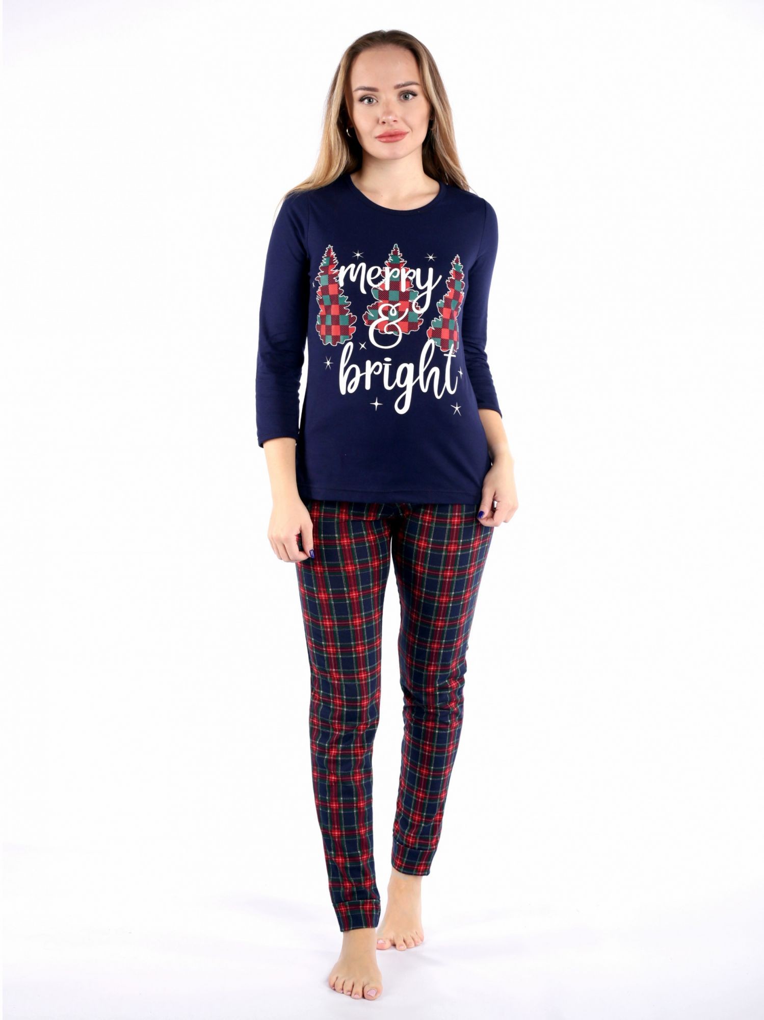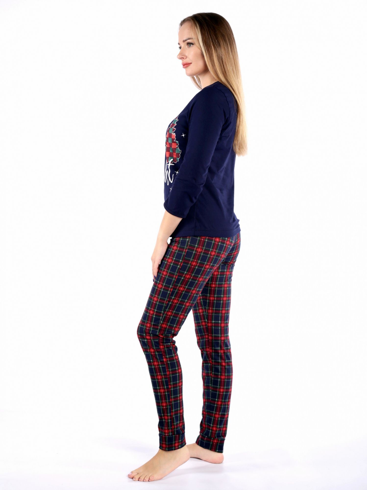 Костюм женский кулирка с брюками Елки красный