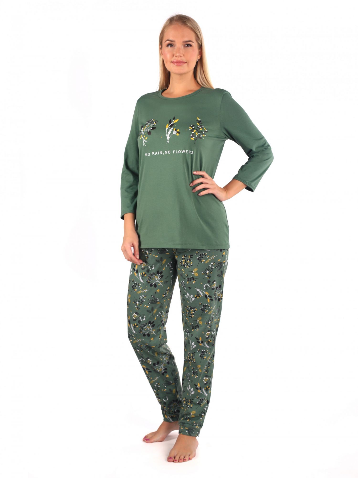 Костюм женский кулирка с брюками Фиби зелень
