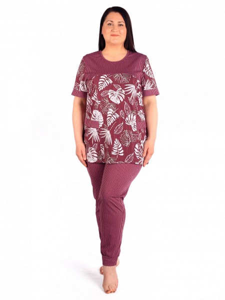 Костюм женский кулирка с брюками Пальма брусника