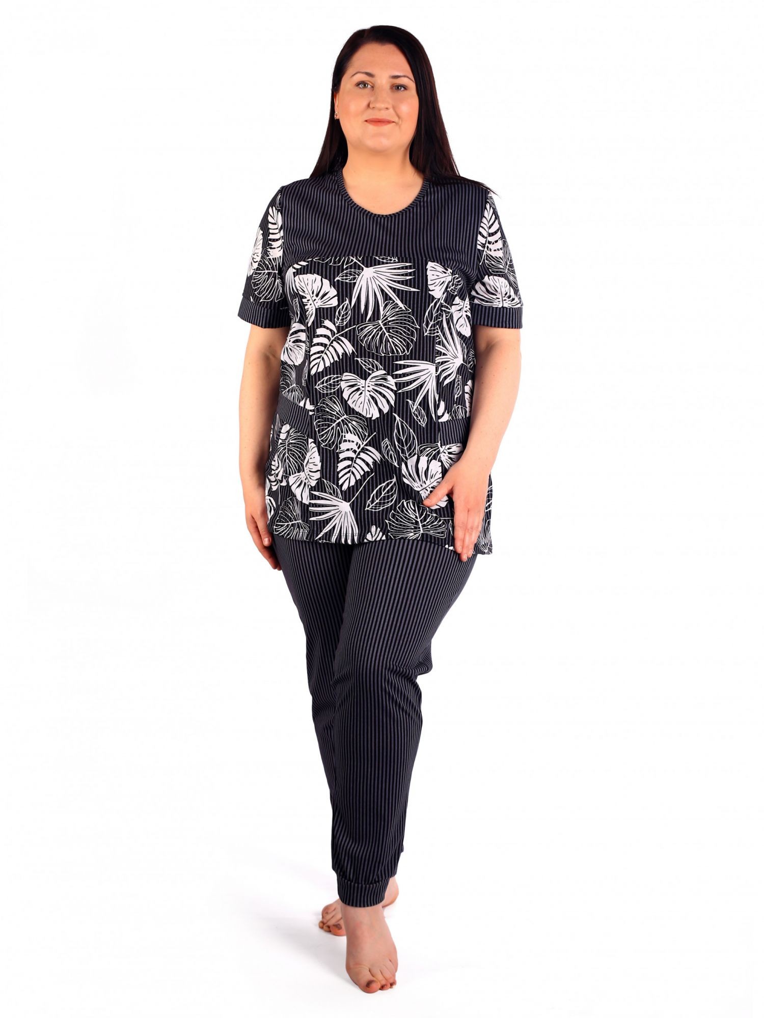 Костюм женский кулирка с брюками Пальма уголь