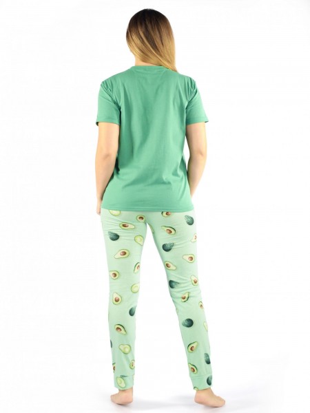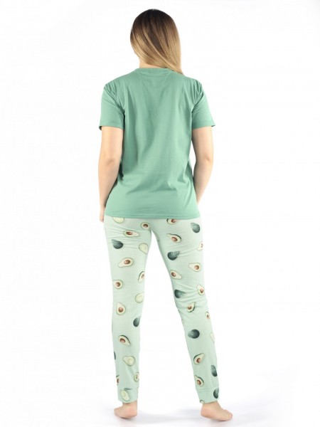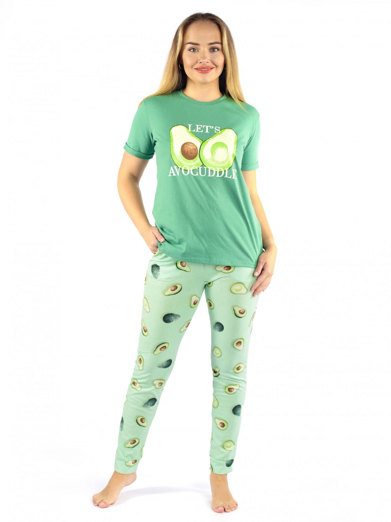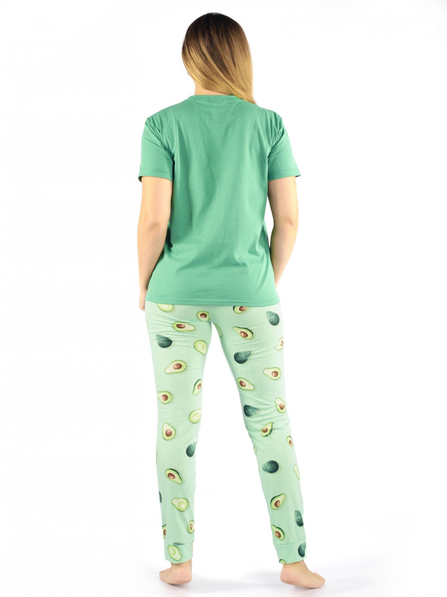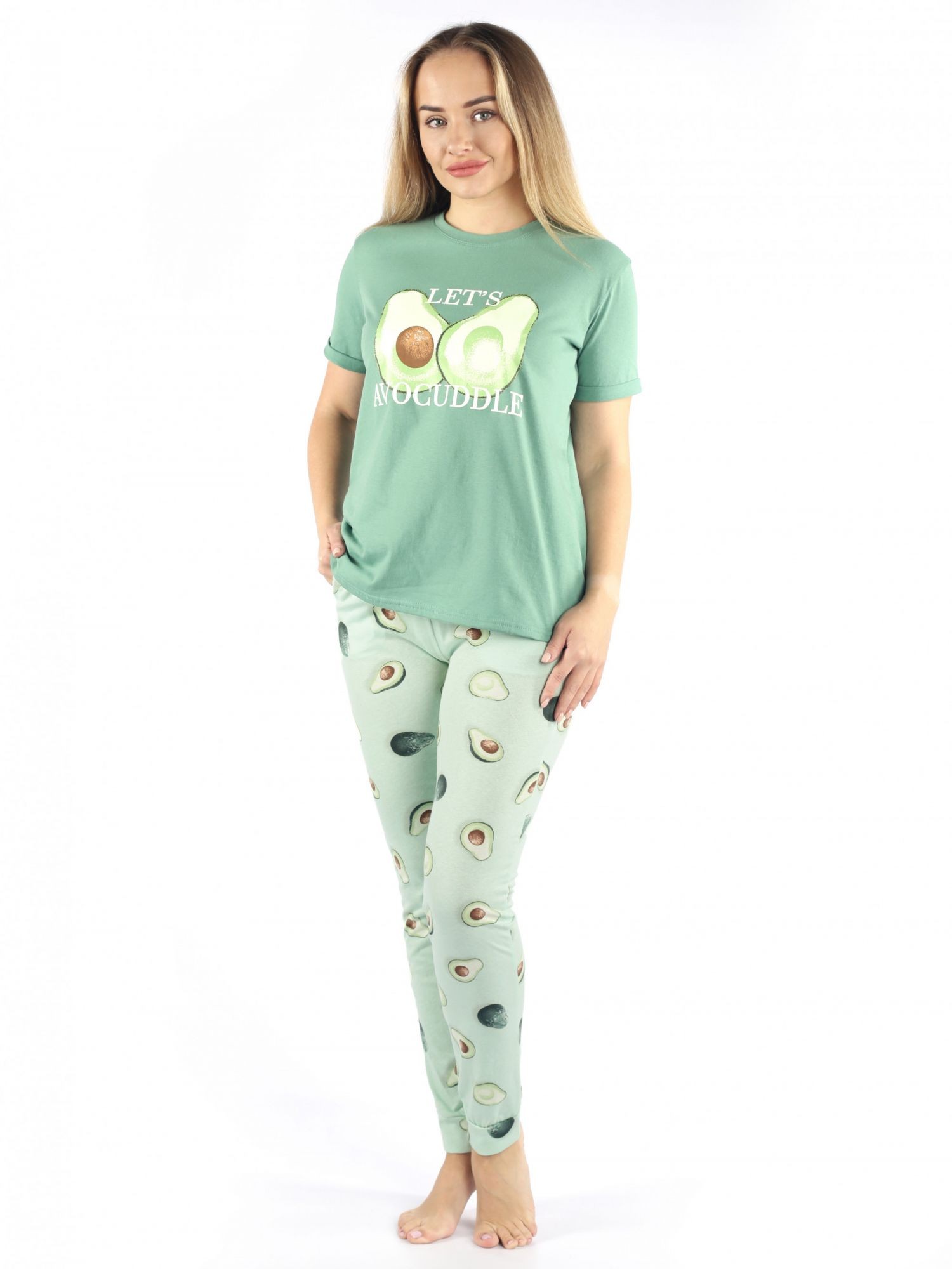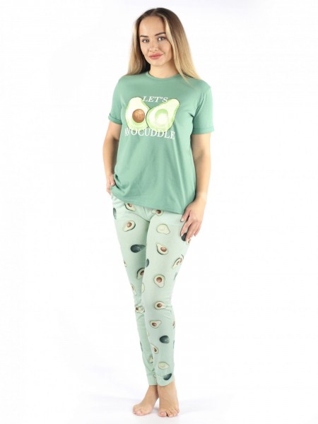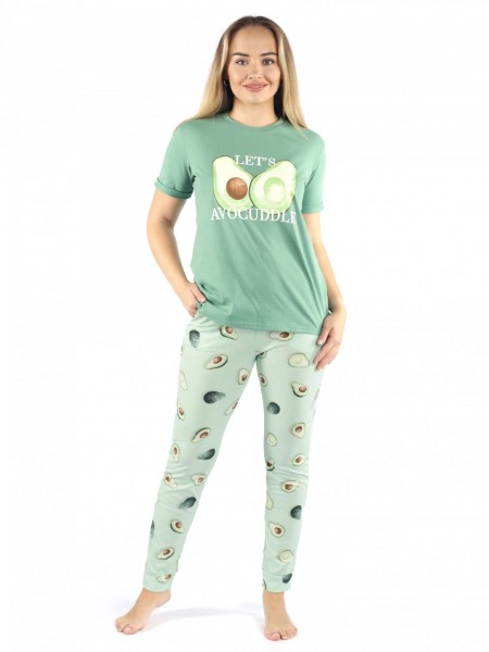 Домашний комплект женский с брюками и футболкой свободного кроя с принтом в виде авокадо. Рисунок выполнен с использованием современных технологий. Длинные штаны с принтом и 2 прорезными карманами. Костюм выполнен из натурального 100% хлопка, что делает его воздухопроницаемым, гигроскопичным и гипоаллергенным. Ткань кулирка слабо поддается растяжению и усадке. Приятное к телу полотно не скатывается, сохраняет форму и цвет после множества стирок. Этот комплект прекрасный выбор для беременных и кормящих женщин. Для создания ощущения эффекта оверсайз рекомендуем брать на один-два размера больше. Сделайте подарок себе и своим близким!