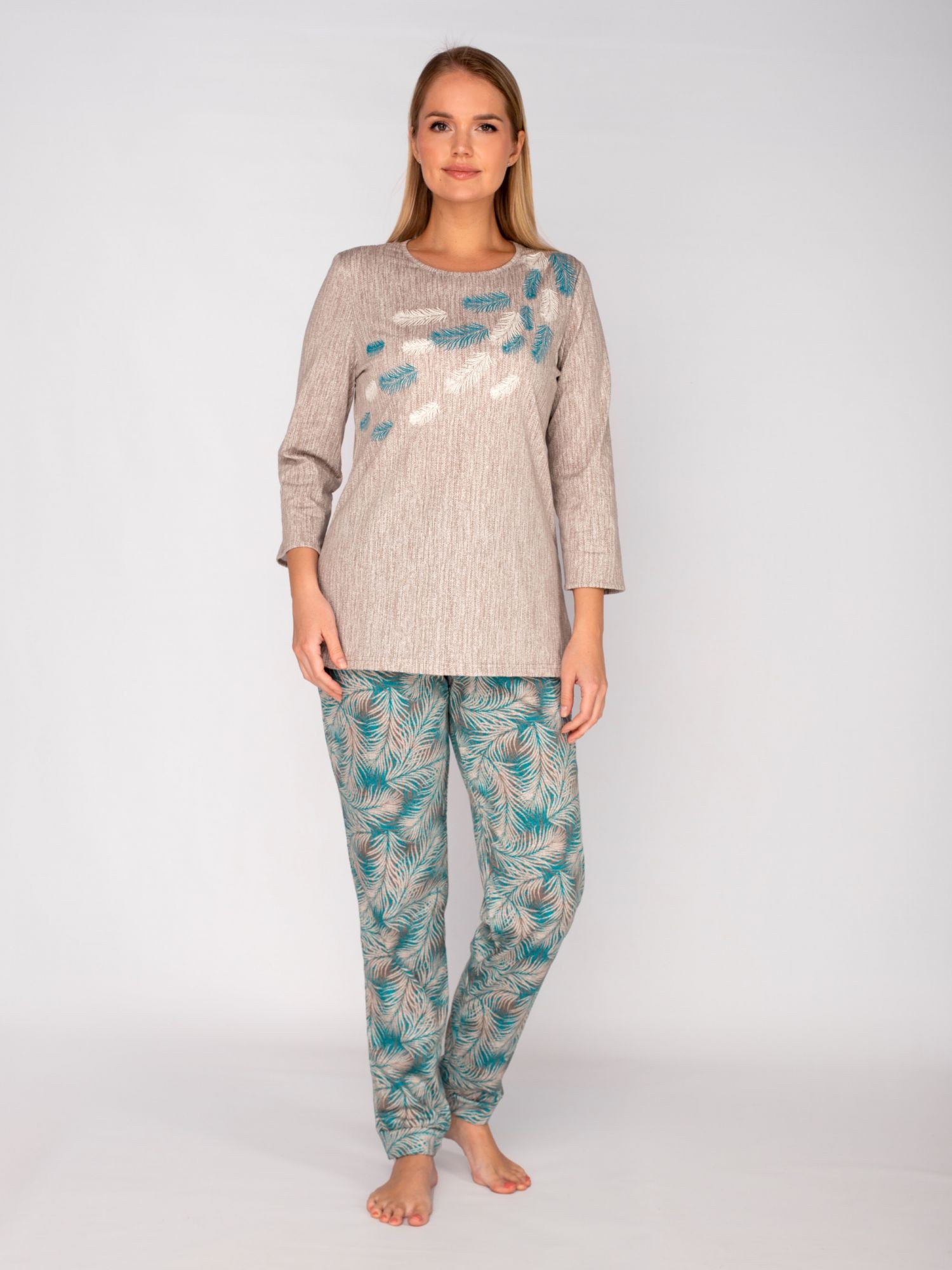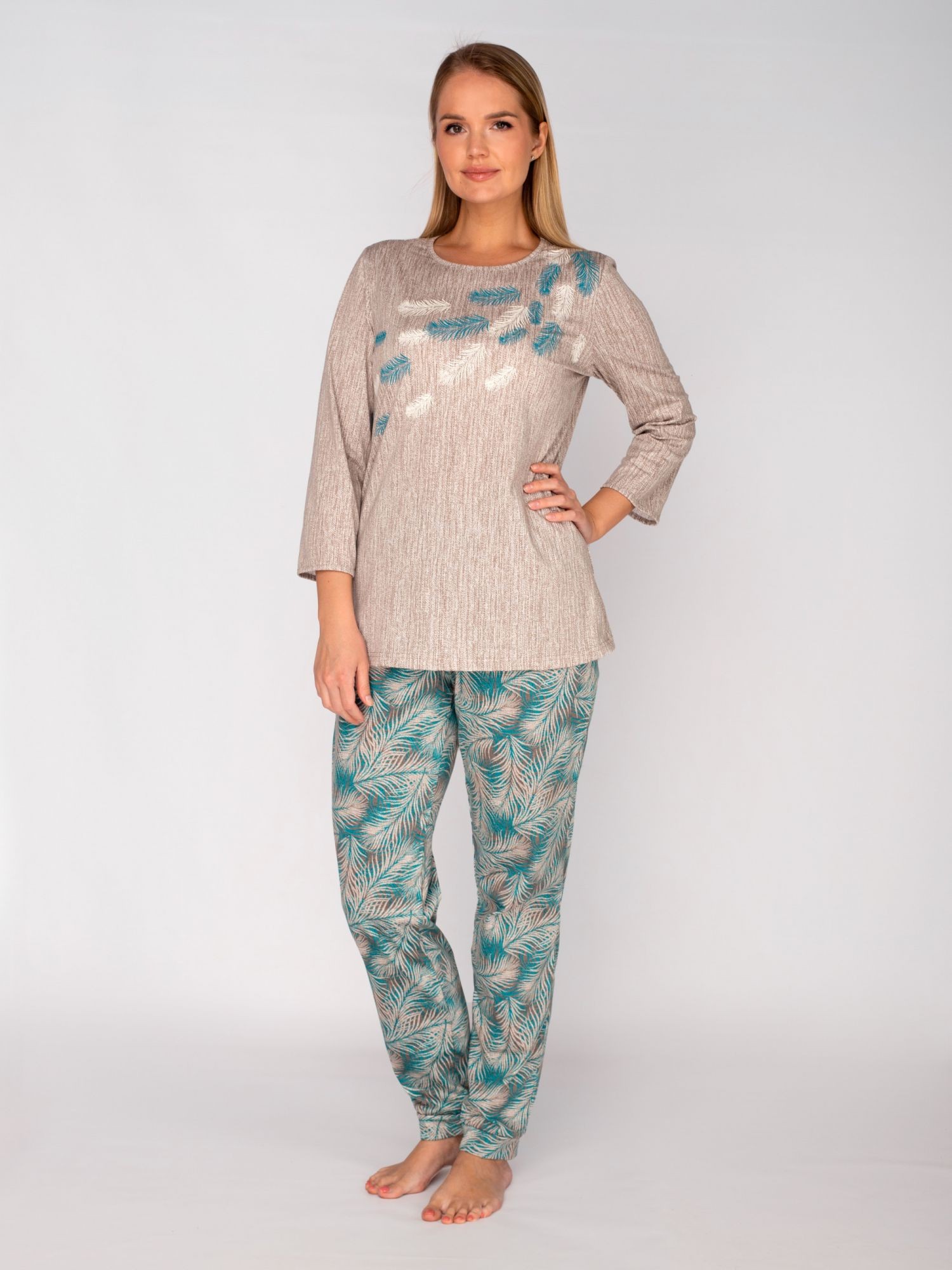 Костюм женский кулирка с брюками Стеша бирюза