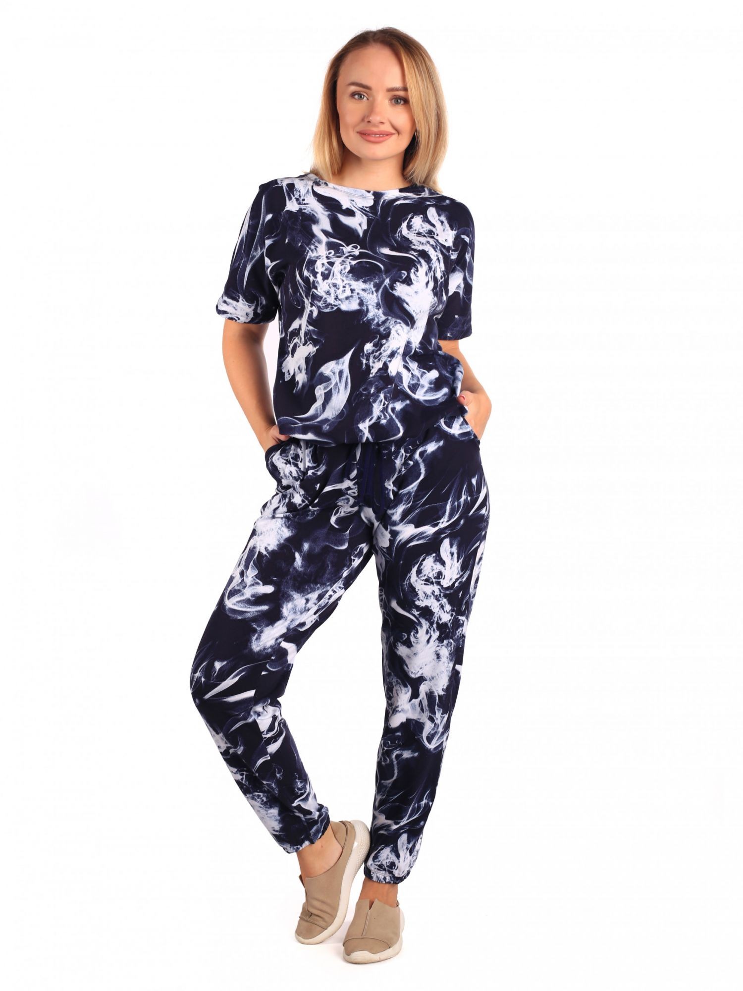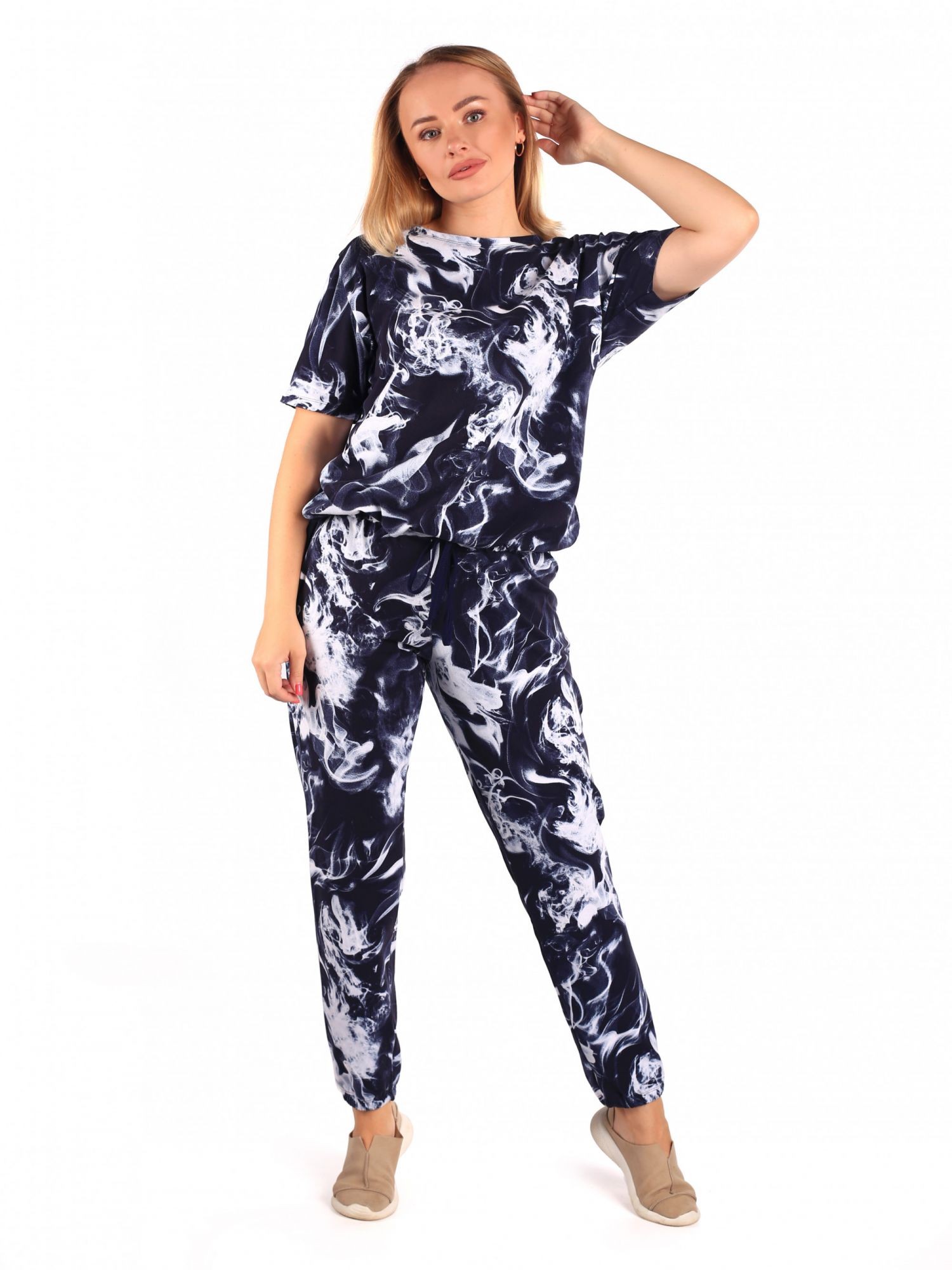 Костюм женский кулирка с лайкрой с брюками Дымка синий