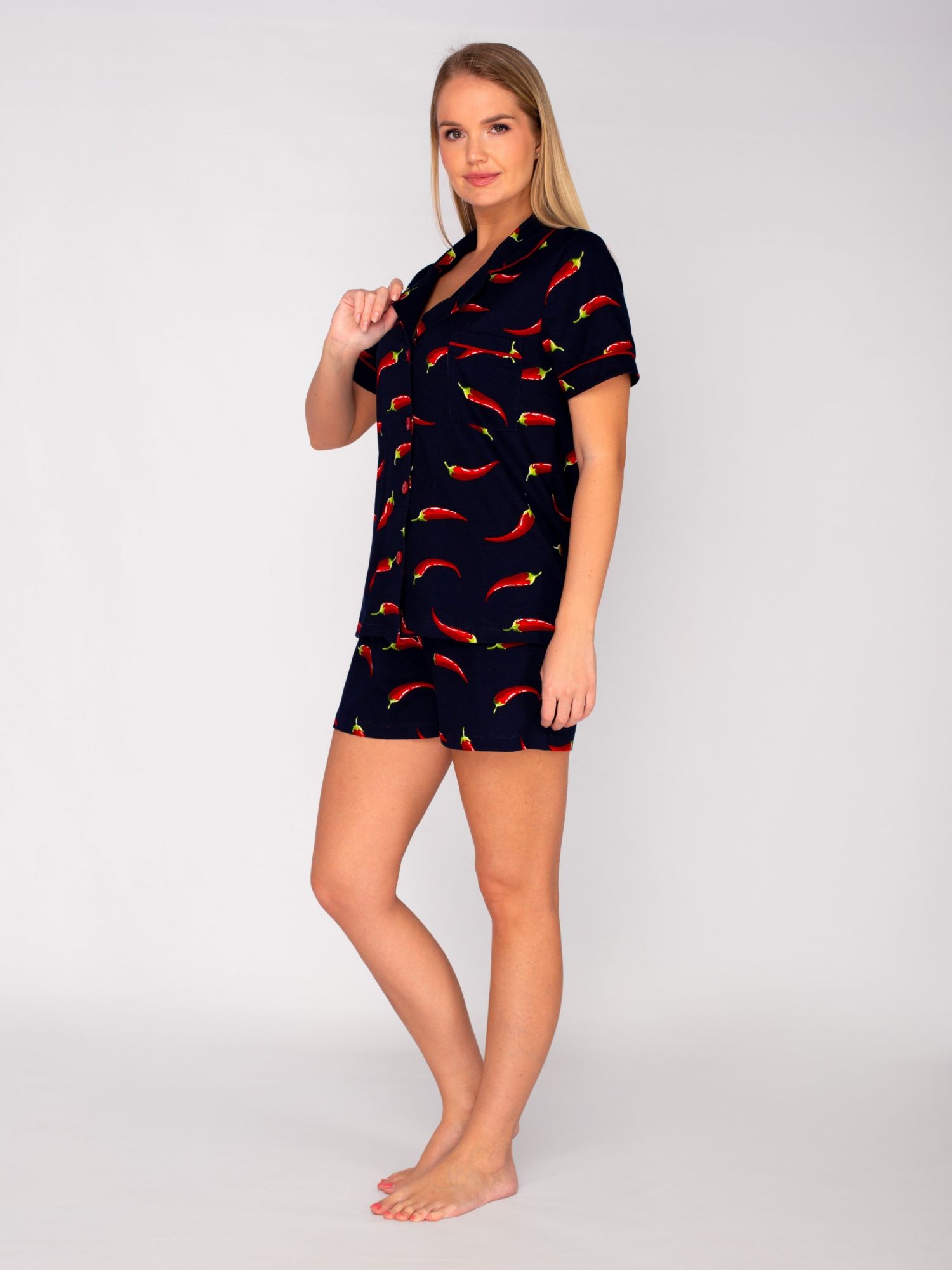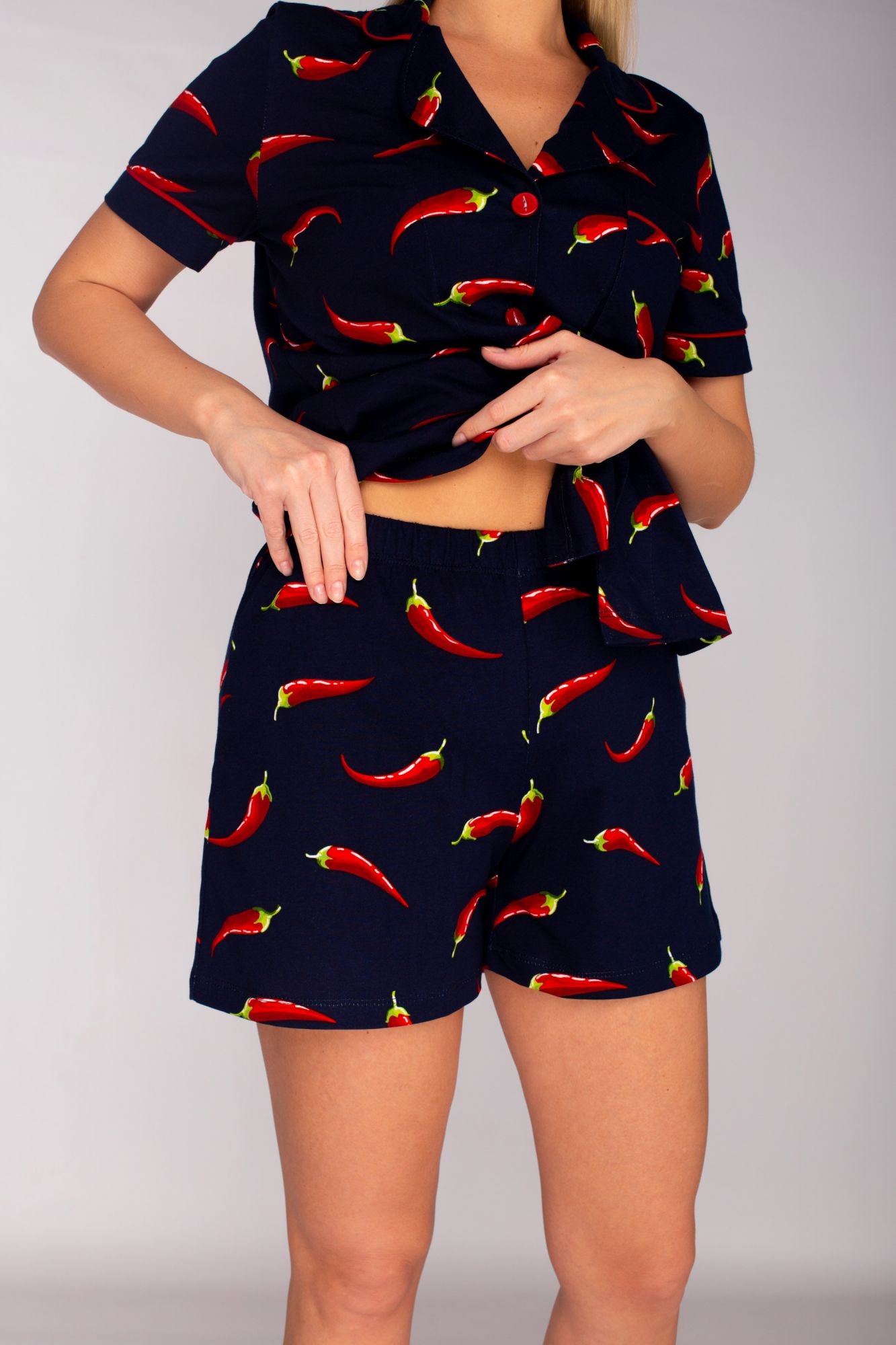 Мягкая уютная пижама, в которой приятно спать, а также просто находиться дома. Комплект состоит из рубашки с коротким рукавом на пуговицах и шорты на резинке. Пижама сделана из 100% хлопка, прекрасно садится по фигуре, кожа дышит и Вы чувствуете себя комфортно. При деликатной стирке 30 градусов пижама сохранит форму и яркие краски. В этом элегантном костюмчике Ваш сон будет чудесным, а утро наполнено яркими красками!