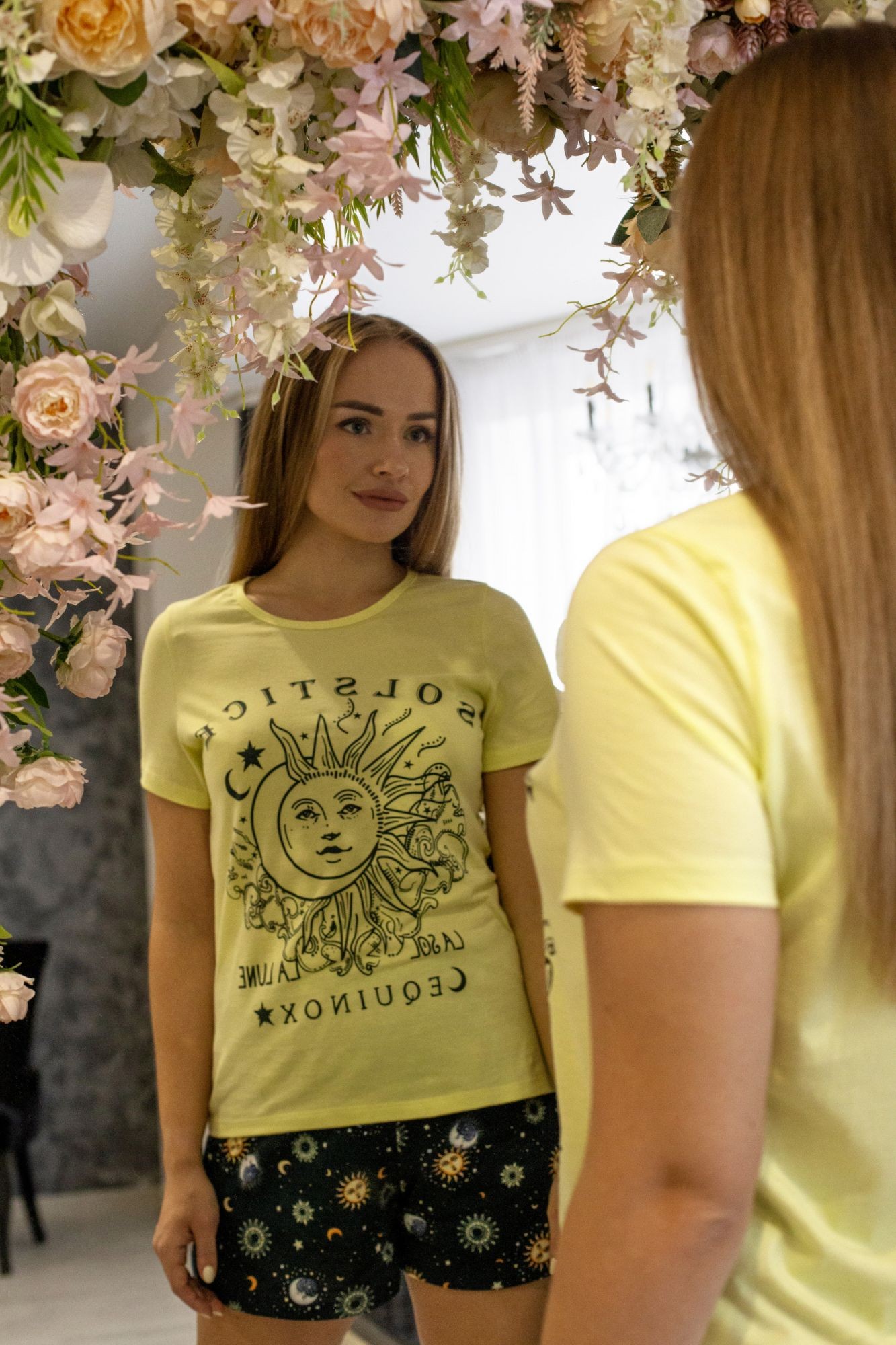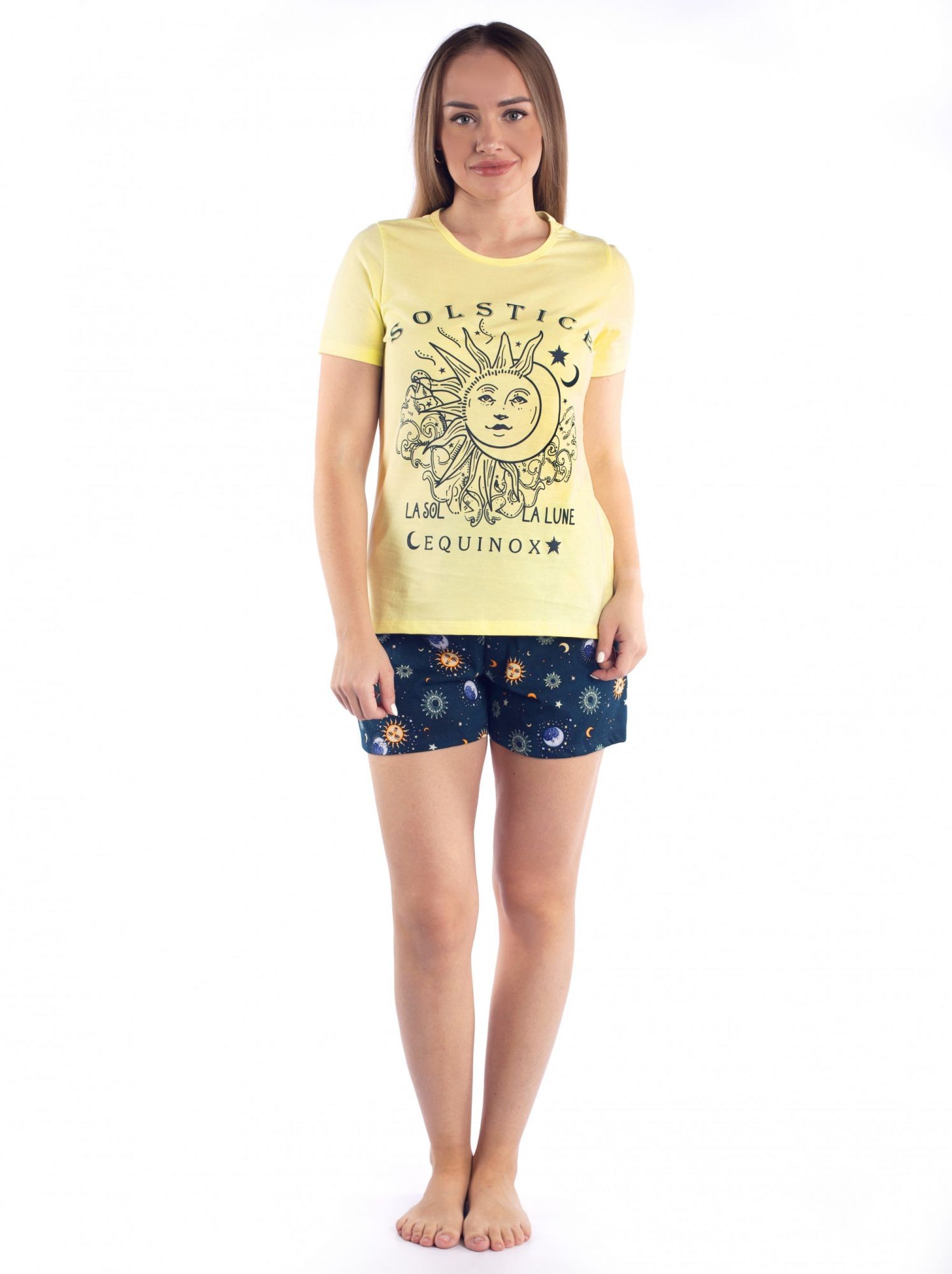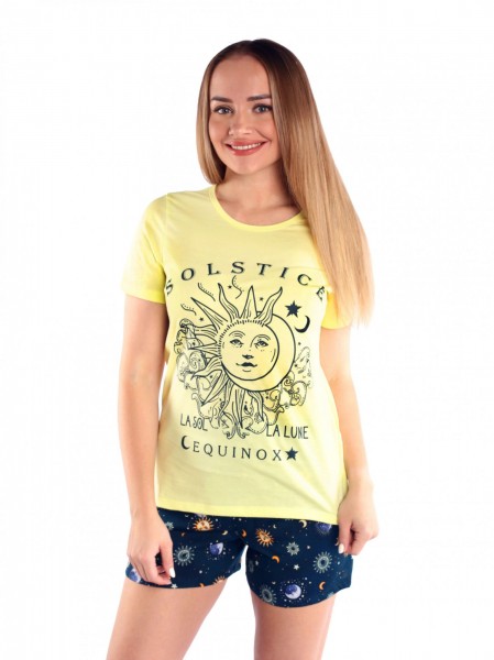 Костюм женский кулирка с шортами Созвездие лимон