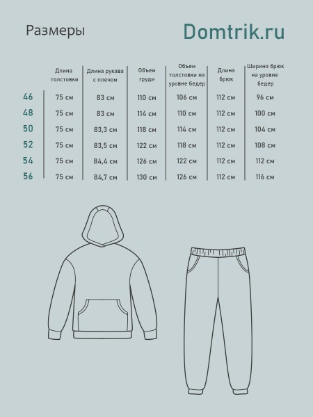 Костюм из футера 3-нитки с начесом. Достаточно плотный, но мягкий. Толстовка с капюшоном, спереди сквозной карман кенгуру. Крой свободный, для повседневной активной жизни. Во избежание скатывания свободных мелких частиц трикотажной пыли на изнаночной стороне обязательна предварительная стирка изделия перед эксплуатацией. Костюм сделан из хлопка с добавлением полиэстра, чтобы костюм не растягивался, держал отлично форму, не выцветал и не выгорал, даже после многочисленных стирок. Подходит для ценителей качества и комфорта в любом возрасте.