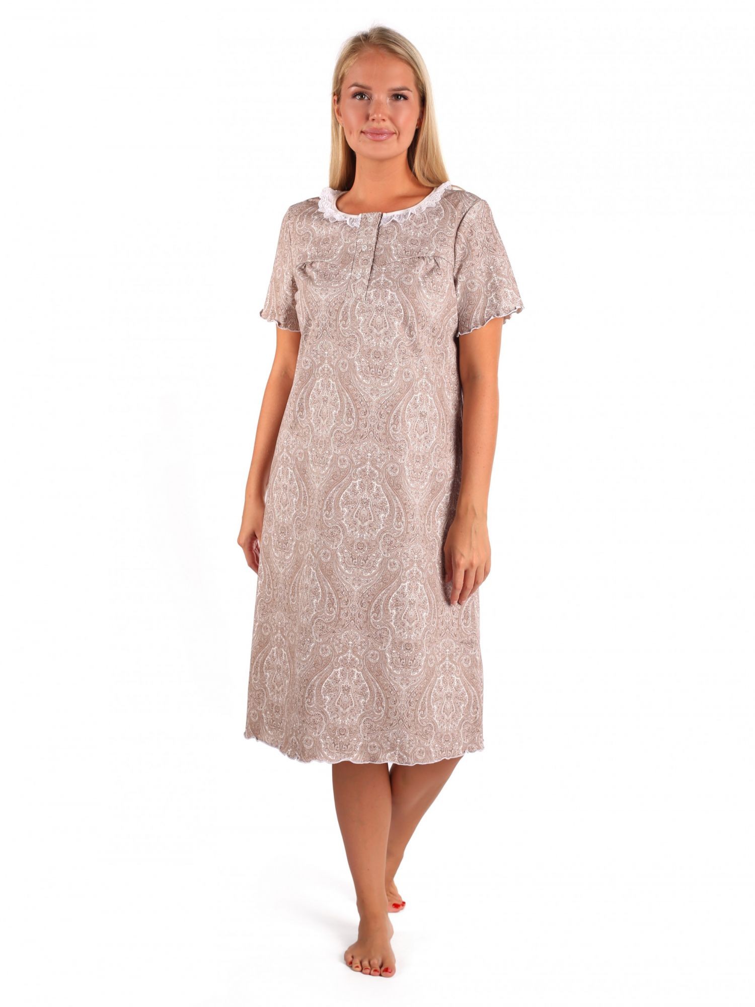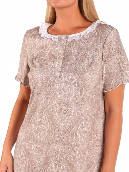 Ночная сорочка женская свободного кроя . На груди отделка в виде кружева и планка на кнопках. Легкая и женственная сорочка для вашего комфортного сна.
