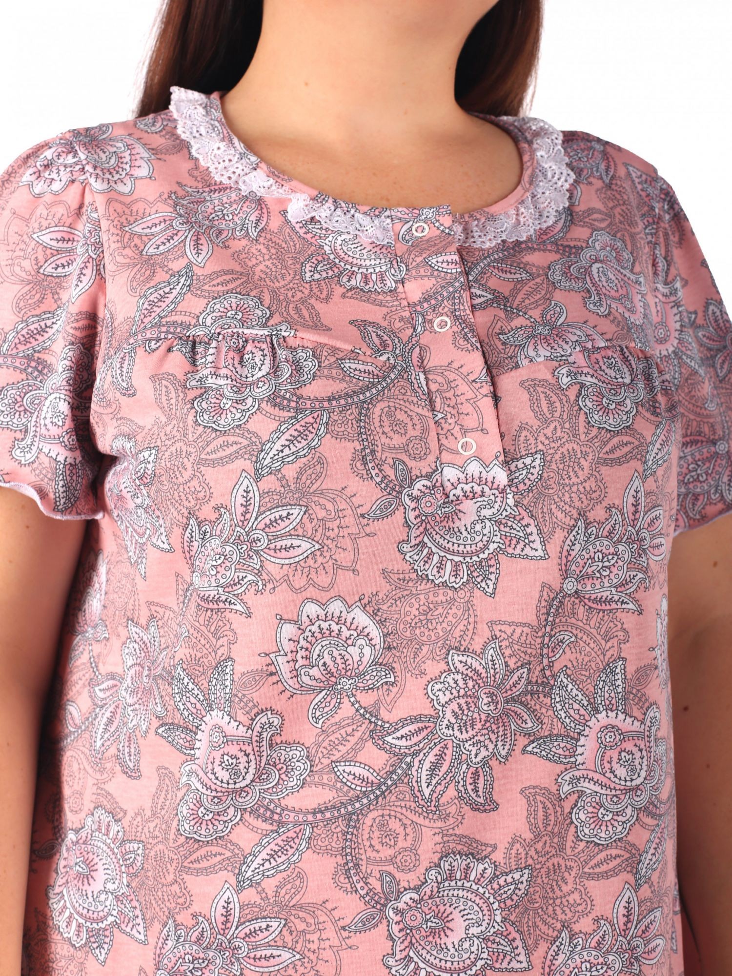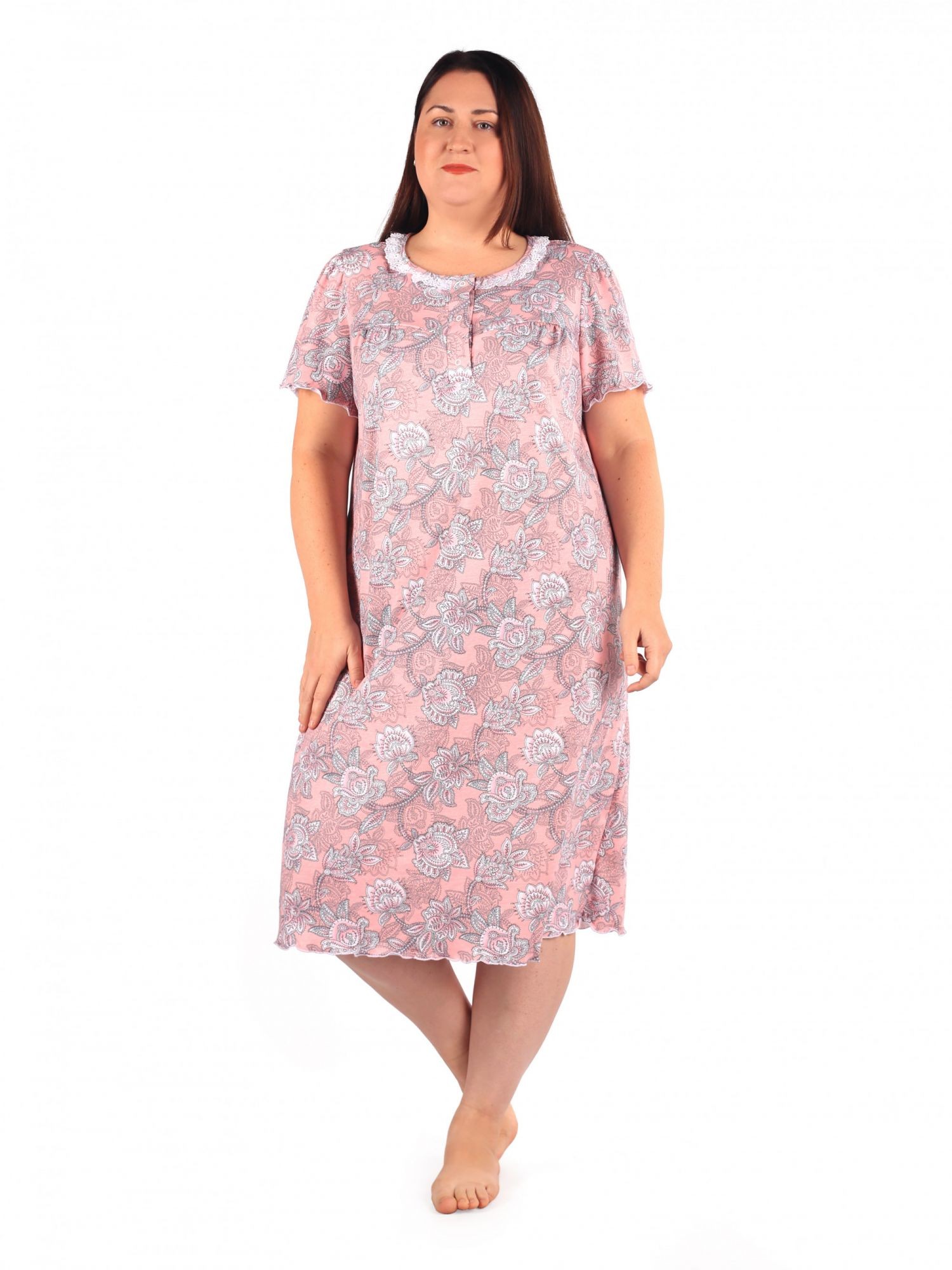 Ночная сорочка женская свободного кроя . На груди отделка в виде кружева и планка на кнопках. Легкая и женственная сорочка для вашего комфортного сна.