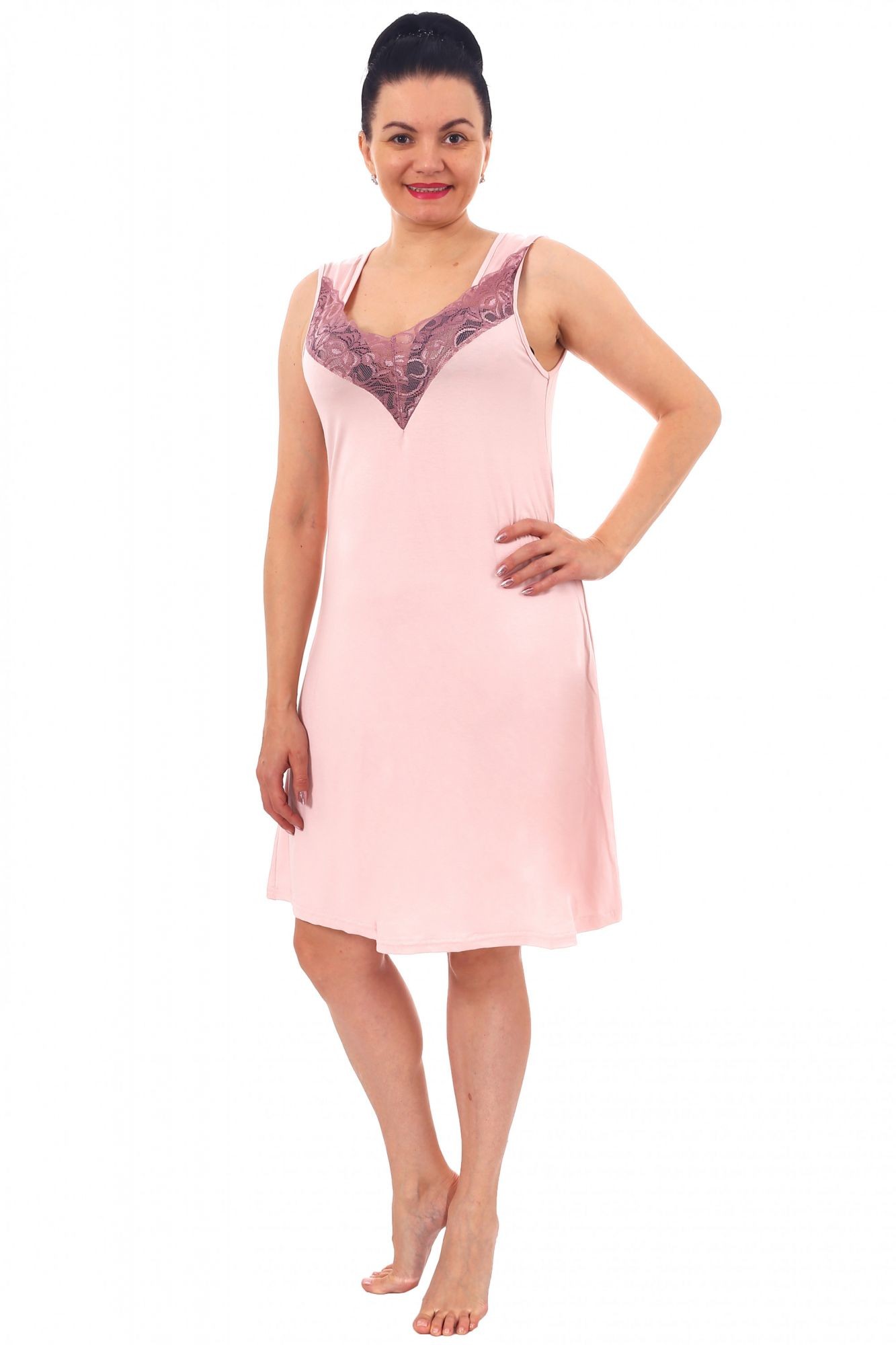 Ночная сорочка женская вискоза Вероника кремово-розовая