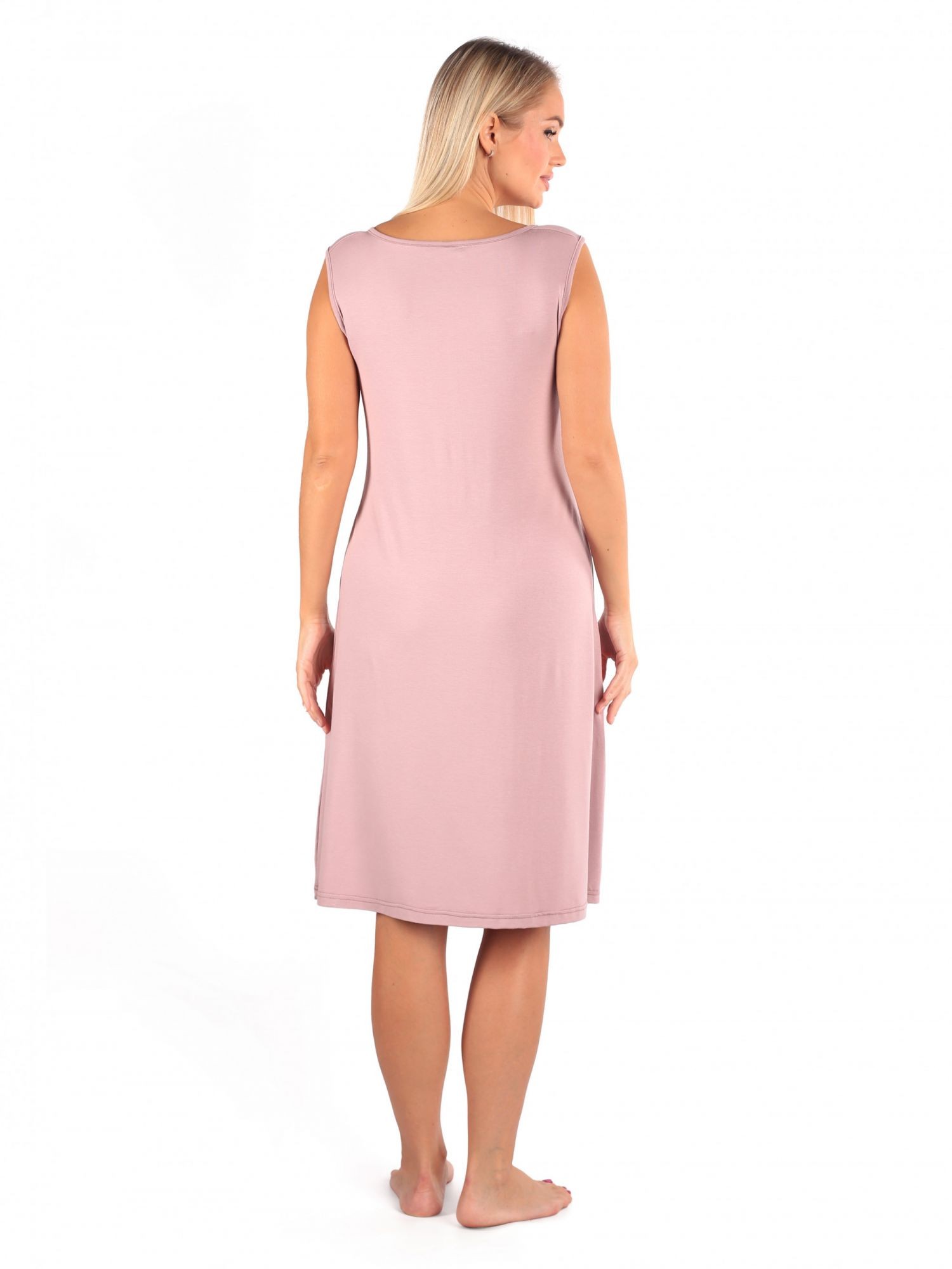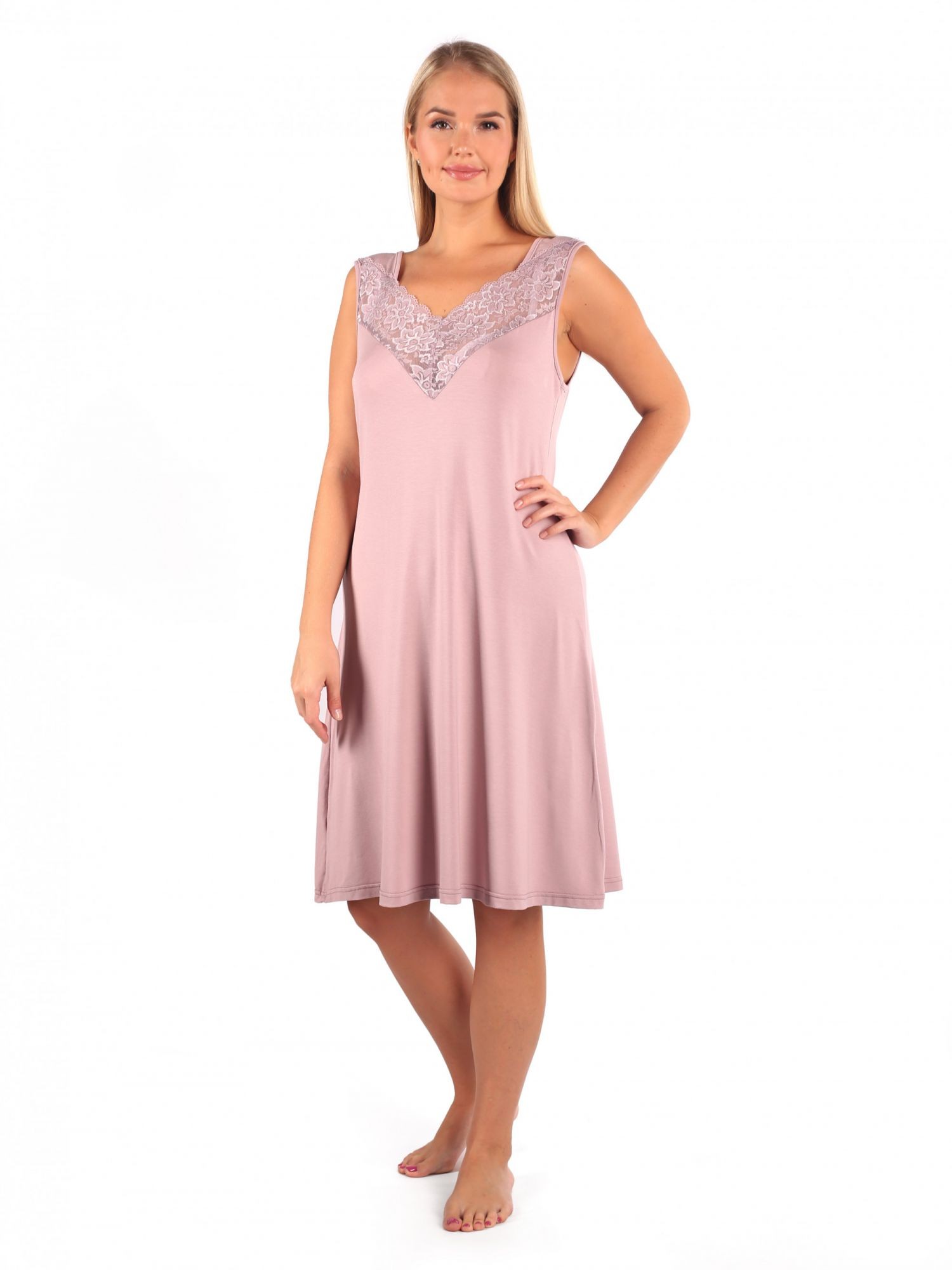 Сорочка трапециевидного силуэта. На полочке располагаются оригинальная кокетка фигурной формы из широкого кружева и фигурные бретели из основной ткани. Горловина, бретели и пройма обработаны окантовкой. Нижний срез обработан швом в подгибку. Длина изделия 95-112см.