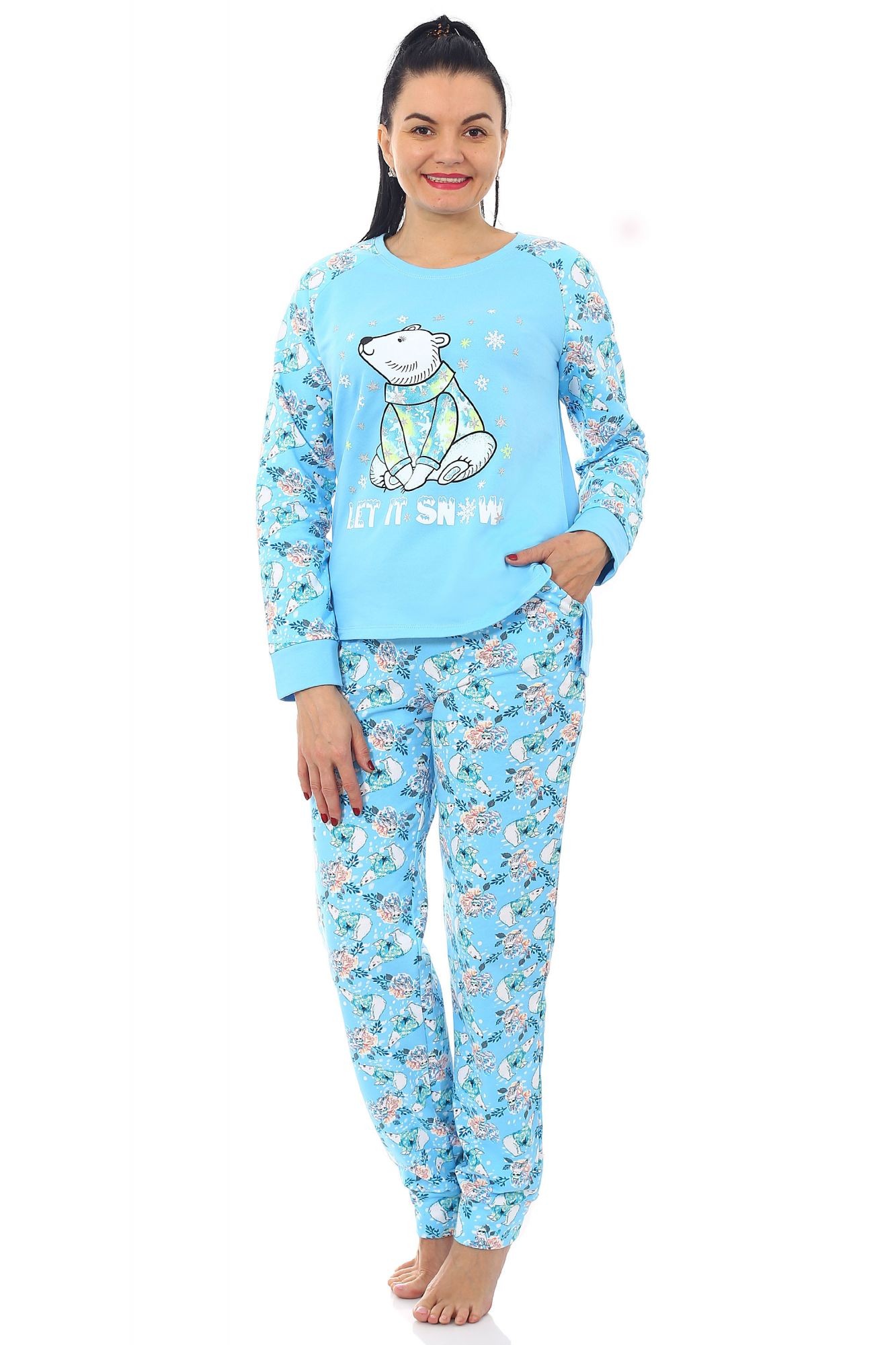 Мягкая утепленная пижама с милым принтом зимнего мишки. Такая домашняя одежда станет идеальным вариантом для девушек, которые любят сочетание комфорта, уюта, красоты и удобства. Домашний костюм из футболки с длинным рукавом и брюк на эластичной резинке позволит заниматься домашними делами без дискомфорта и скованности движений. Вам будет свободно и легко, а сон станет крепче. В составе пижамы с брюками 100% хлопок - отличный легкий, гипоаллергенный материал, который обладает высокой прочностью, прост в уходе, не деформируется и не меняет свой вид даже после многократных стирок. Фактура костюма - футер с начесом, т.е он имеет гладкую структуру с лицевой стороны, а с изнаночной небольшой начес, способный согреть вас. Пижама теплая включает маленькие и большие размеры.Хорошо подойдет для новогодней фотоссесии