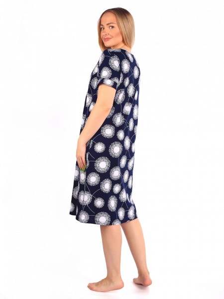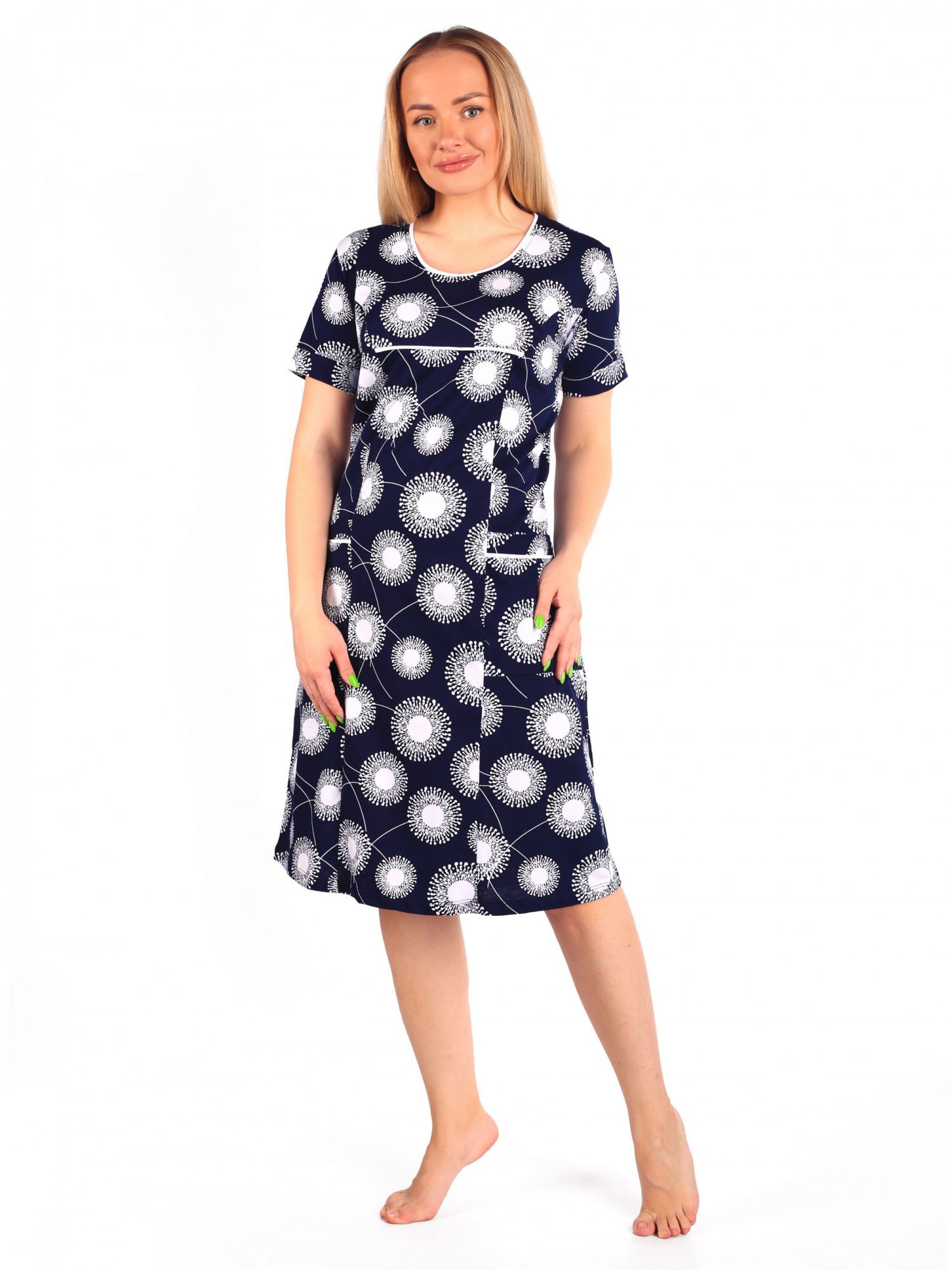 Женское платье полуприлегающего кроя с окрыглым вырезом горловины, обработанной планкой, короткий рукав на манжете, отлично подойдет для повседневной носки. Материал 100% хлопок, обеспечивающий гигиенические свойства ткани, что приносит комфорт и удобство в использовании данной модели.