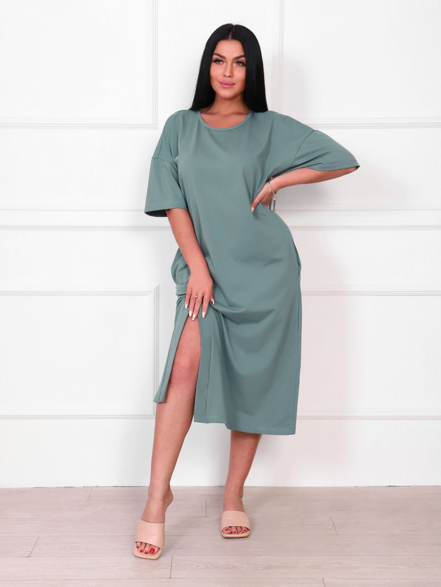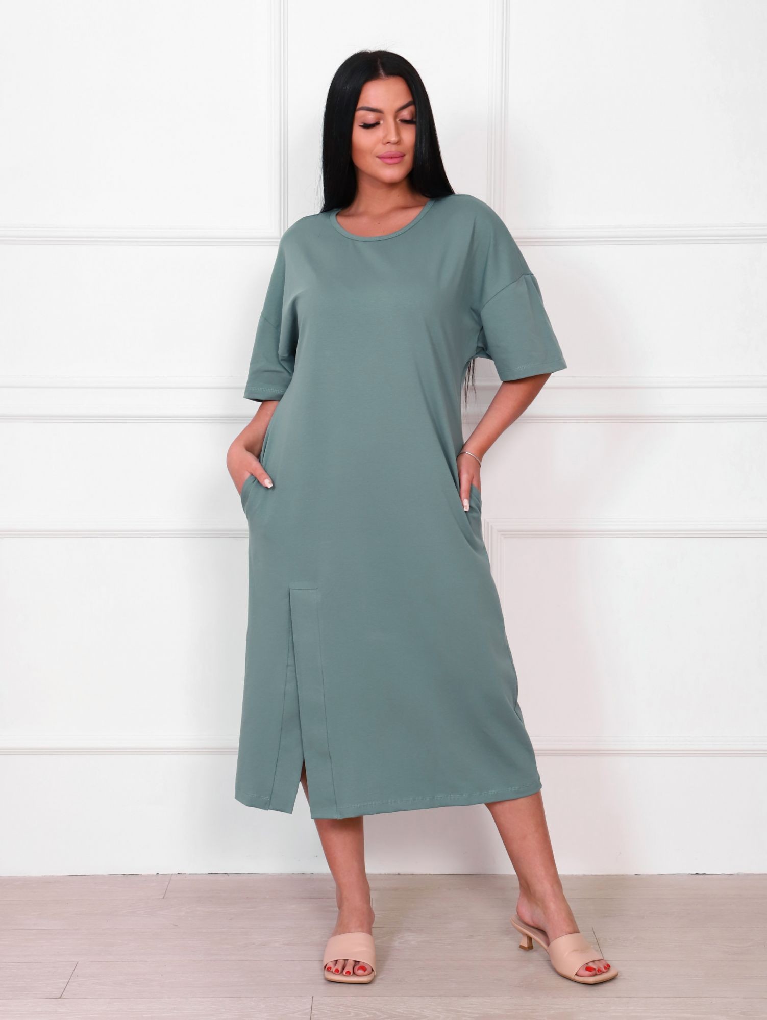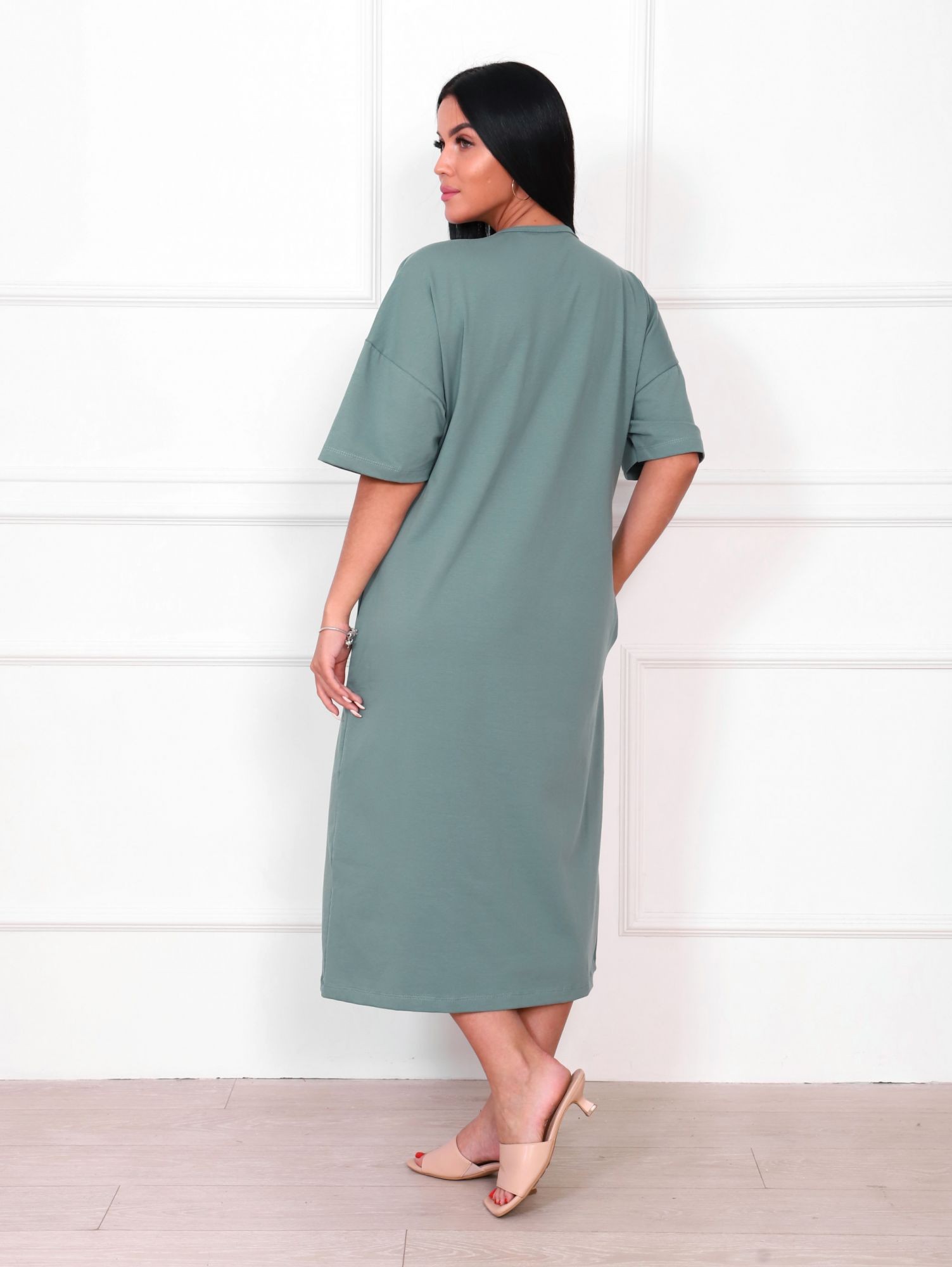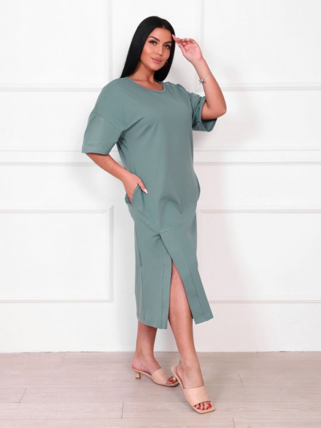 Платье женское кулирка с лайкрой Стелла серо-зеленый