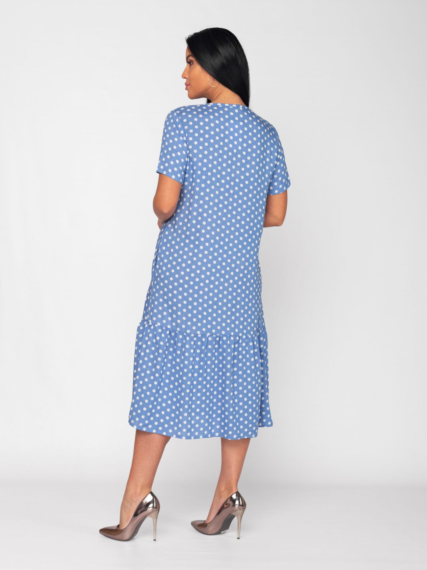 Платье женское штапель Валенсия горох голубой