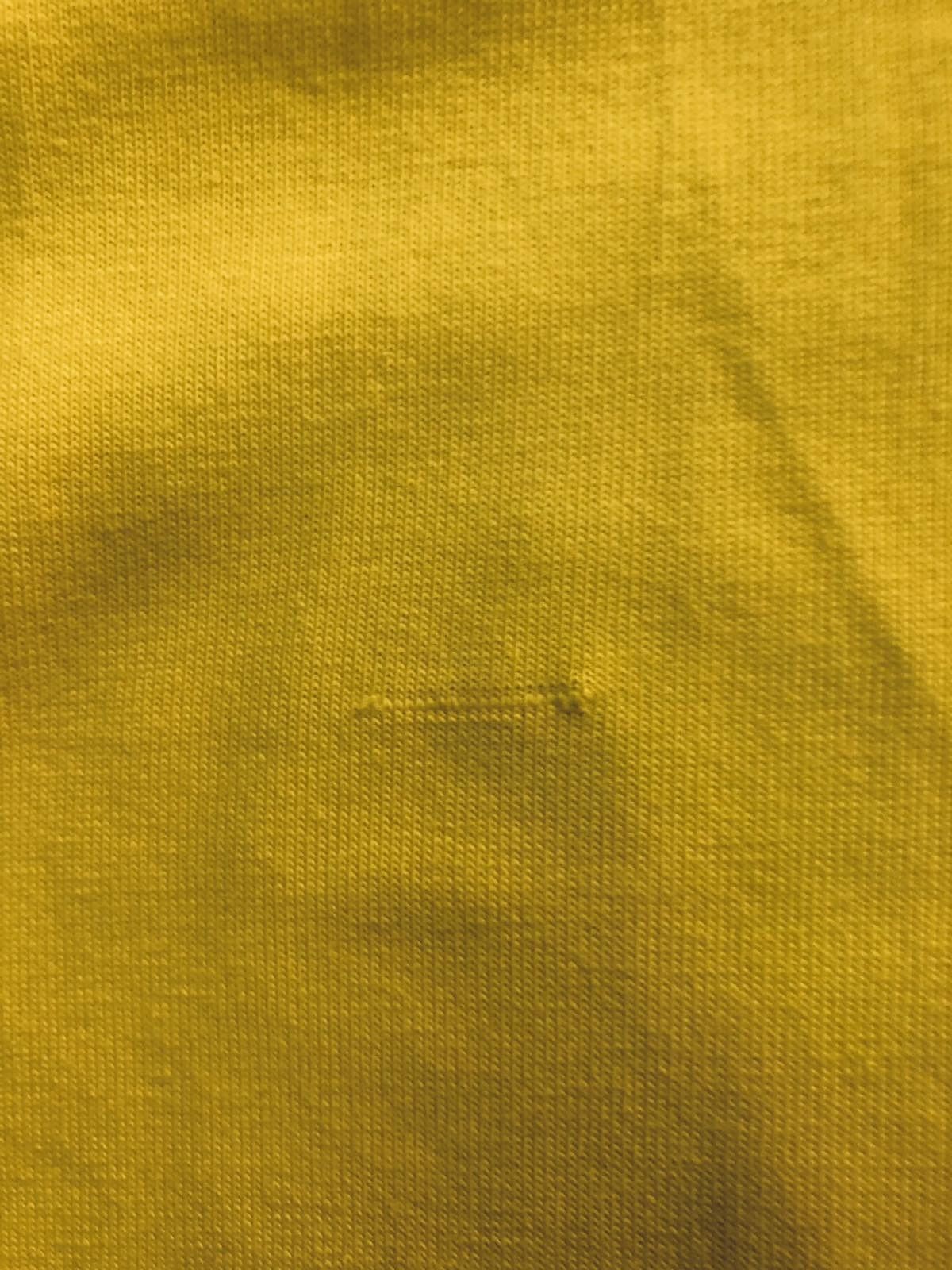 На сарафане цвета лимон имеется небольшой дефект на ткани размером 2 см. находится на передней полочке на высоте 10 см от волана.