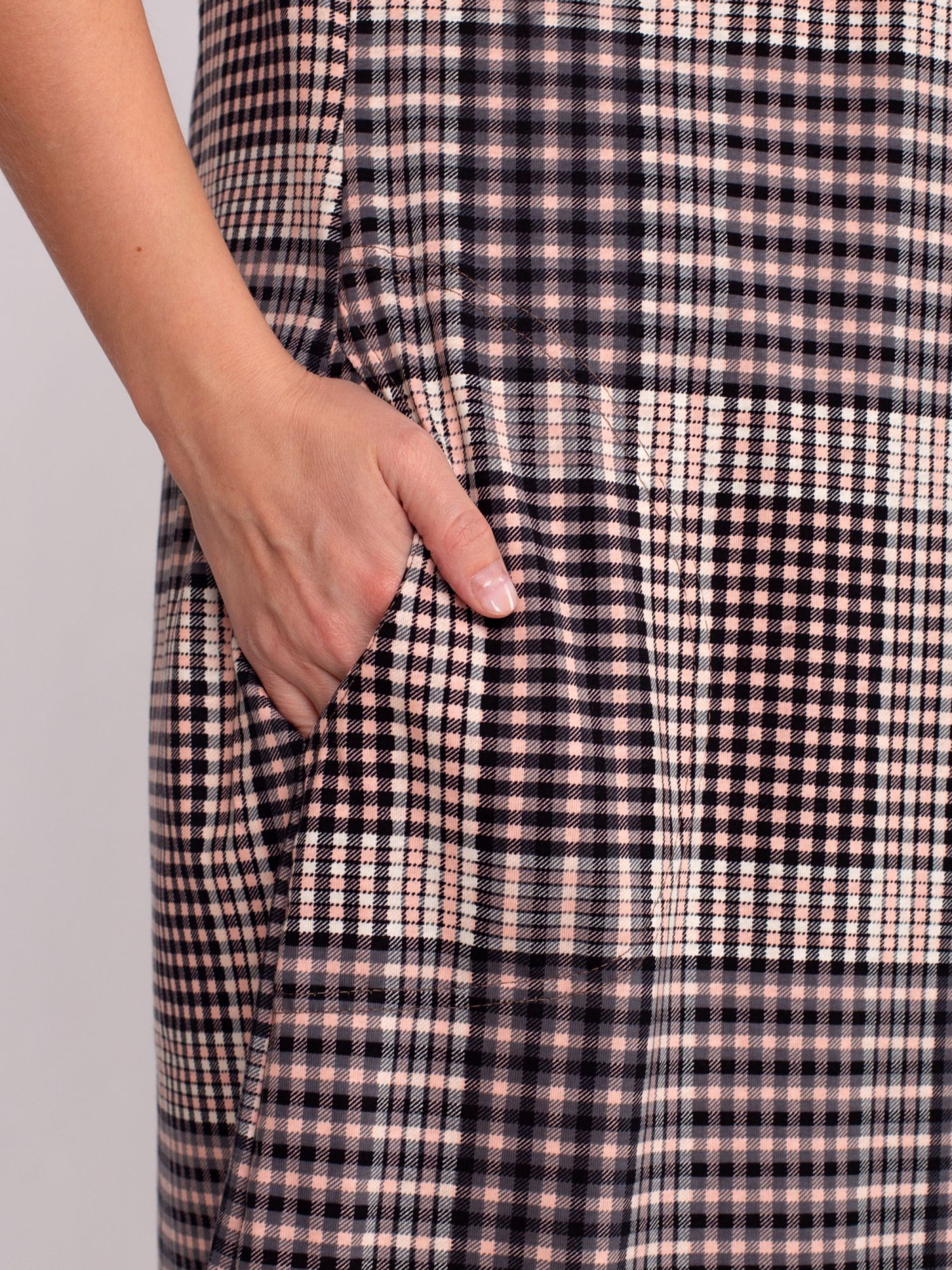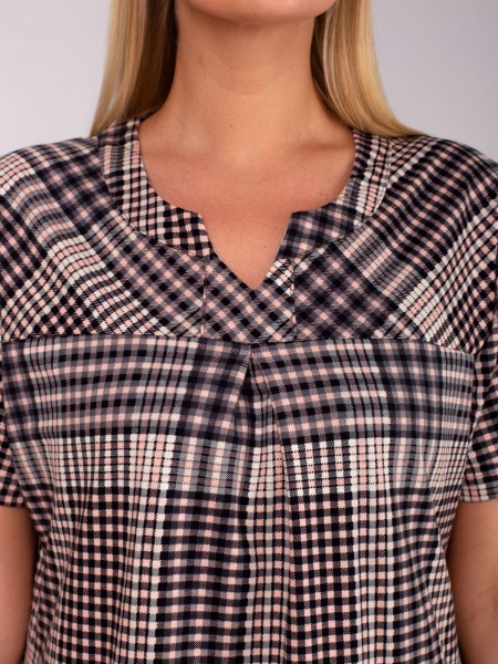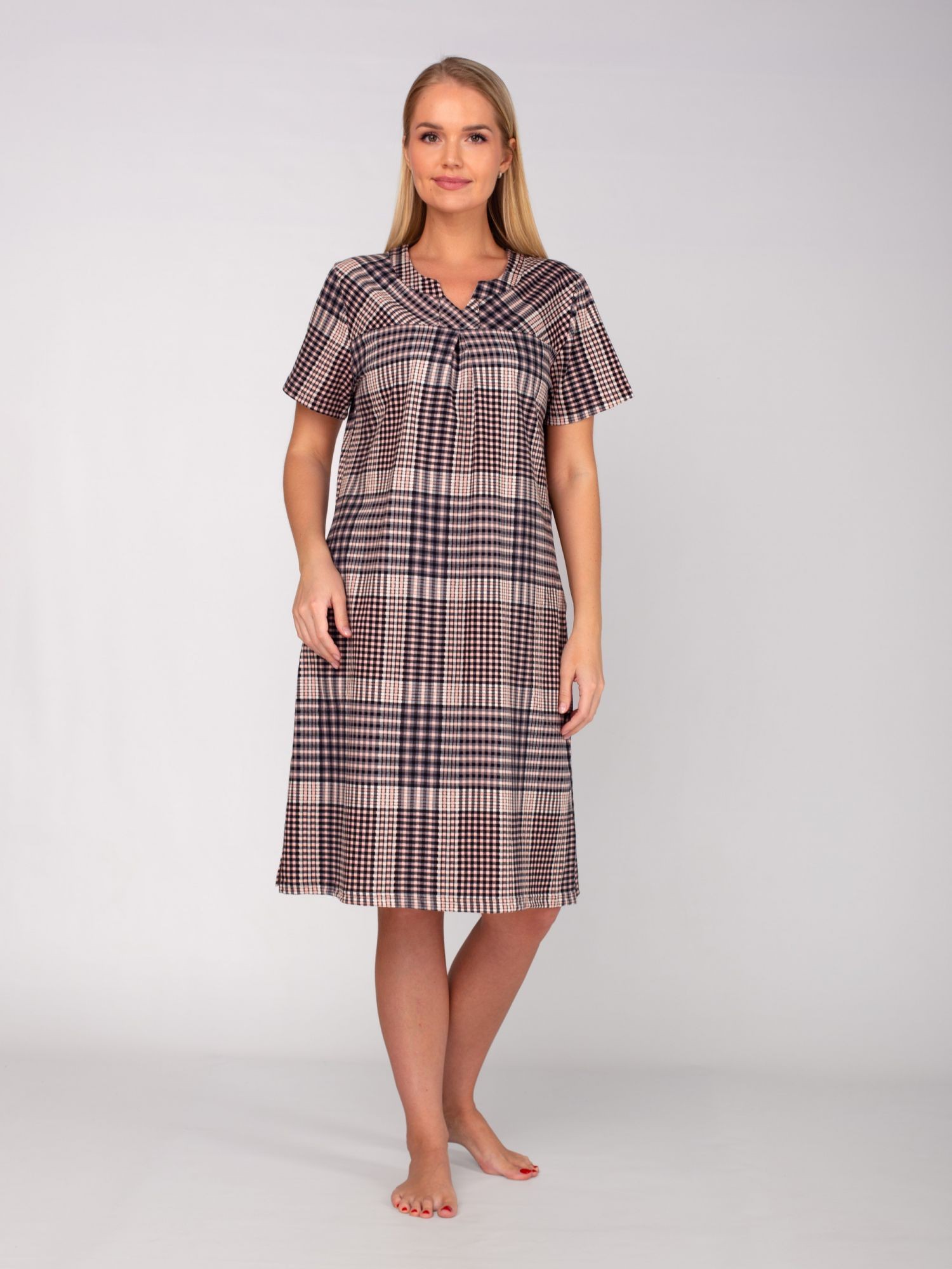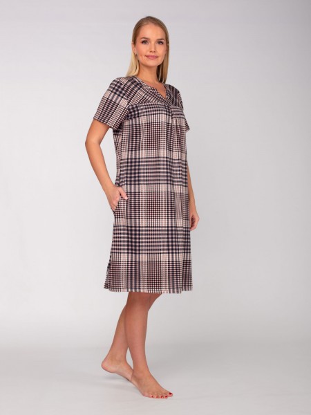 Платье 'Британи' выполнено из трикотажного полотна 'кулирка' из модного рисунка в клетку. Состав - хлопок 100%. Модель свободного силуэта, с короткими рукавами, прорезными карманами в области бедер.Платье очень уютное и комфортное, подходит на любой тип фигуры! Не только красиво, но и удобно!