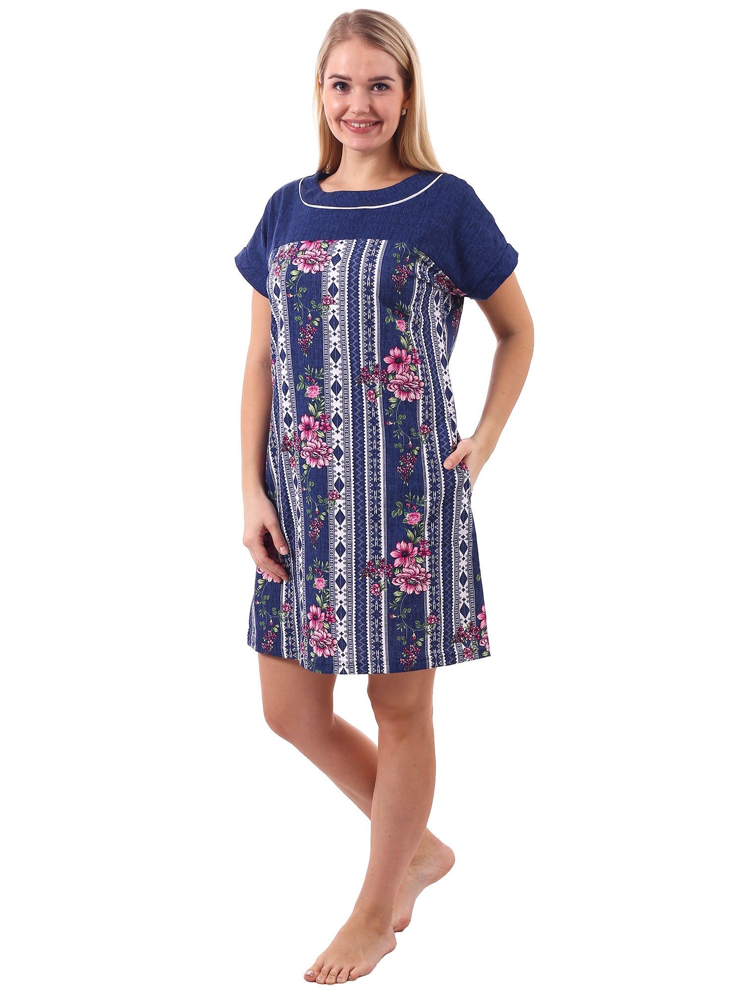 Туника женская кулирка Глория цветок розовый
