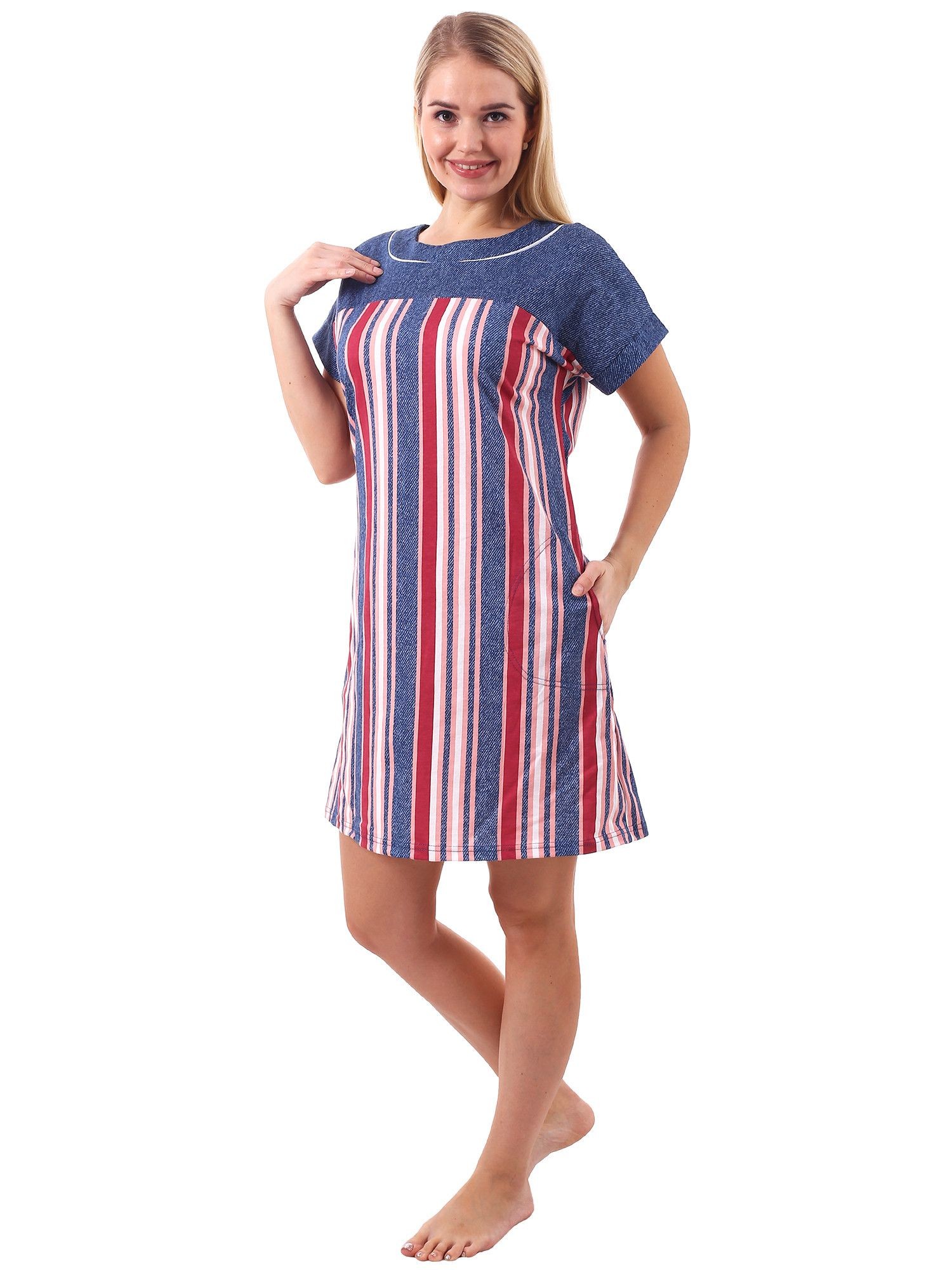 Туника женская кулирка Глория полоса розовая